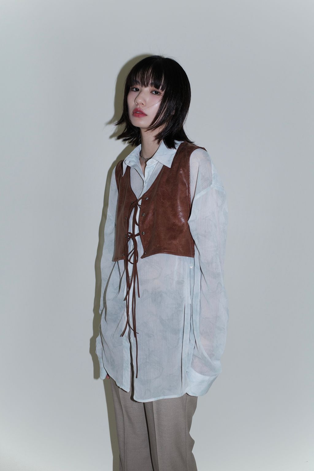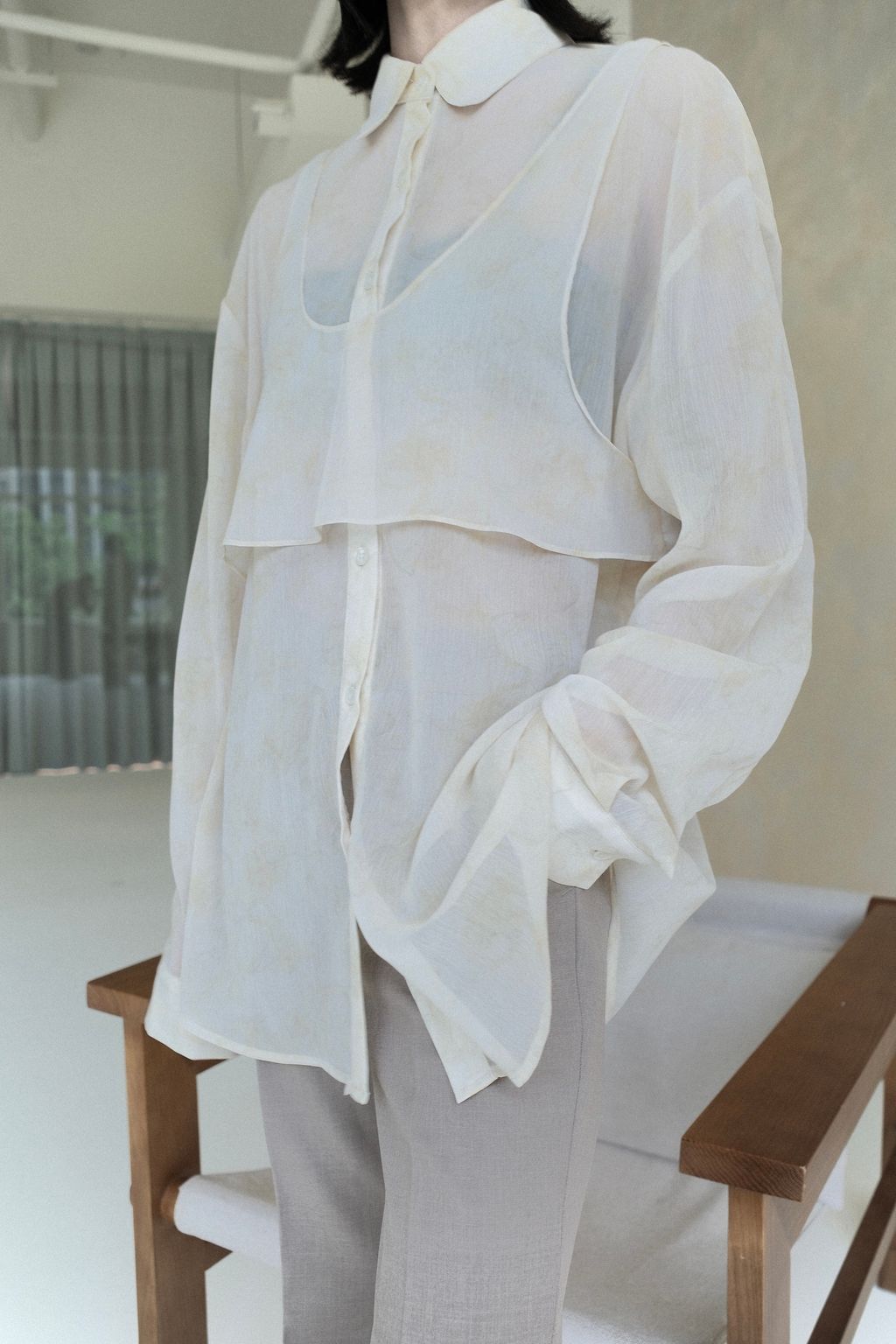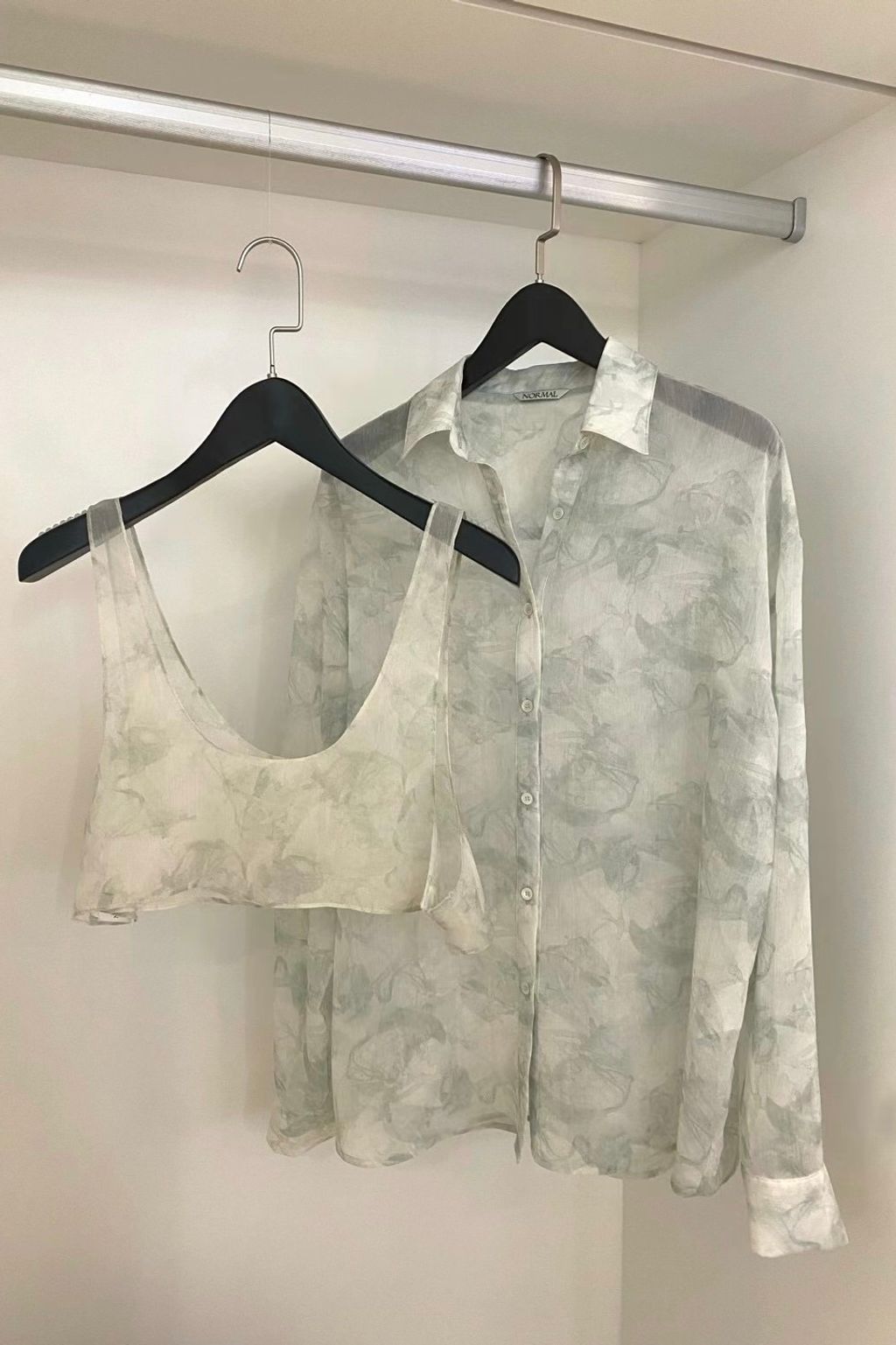 / 韓國設計師品牌 / 兩件式暈染透膚襯衫 - 鵝黃色 / 青花瓷綠