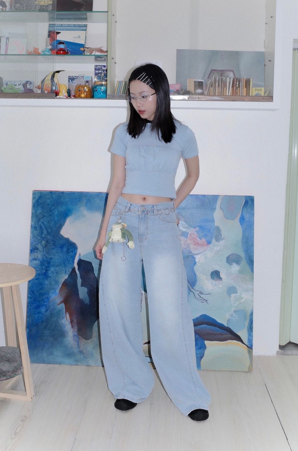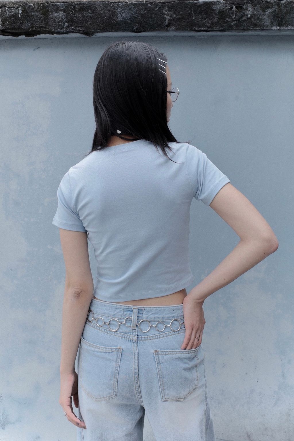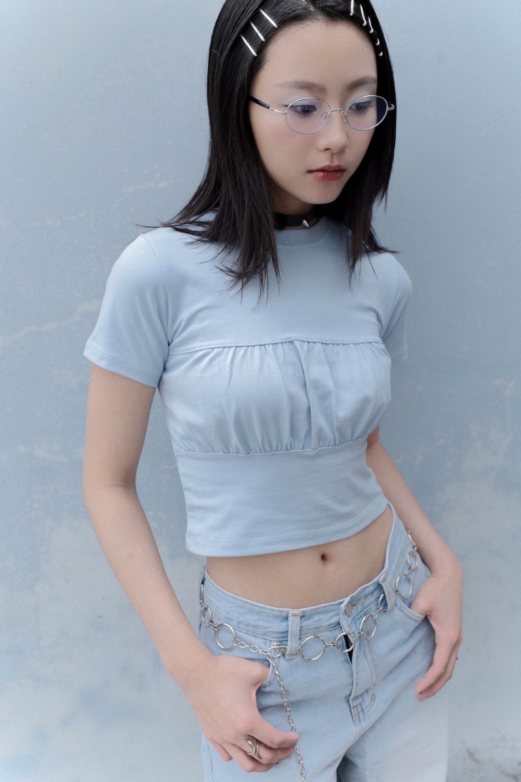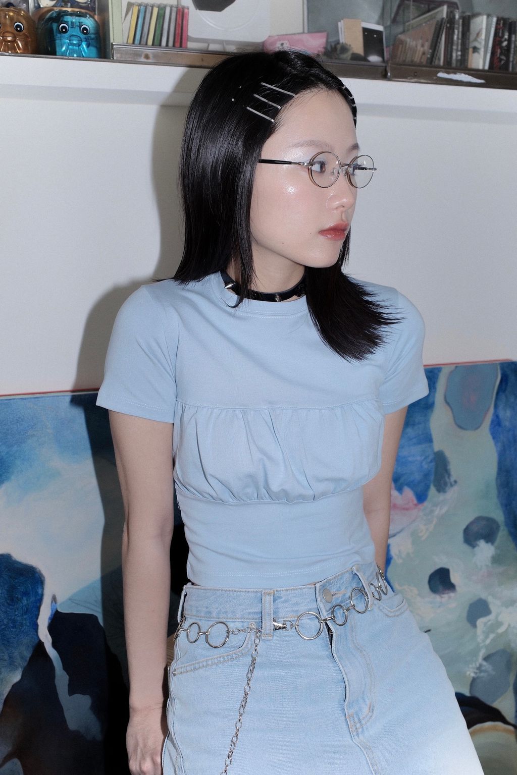 純棉抓皺拼接親膚上衣 - 藍色 / 灰色01A5E9E5-42A3-45BA-A57B-CE1F82212AA780F3A062-1A13-4A90-B338-359DBABAE647