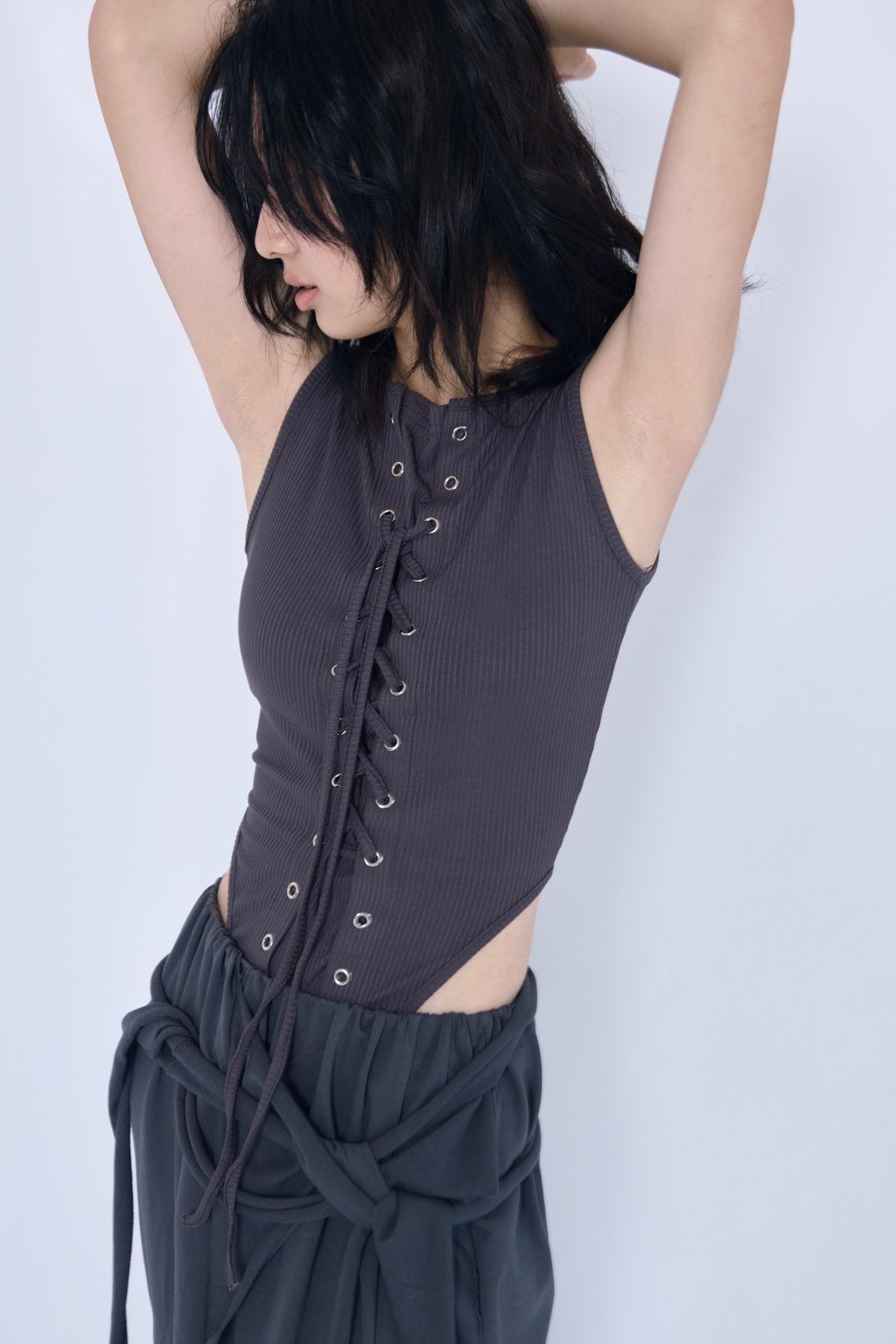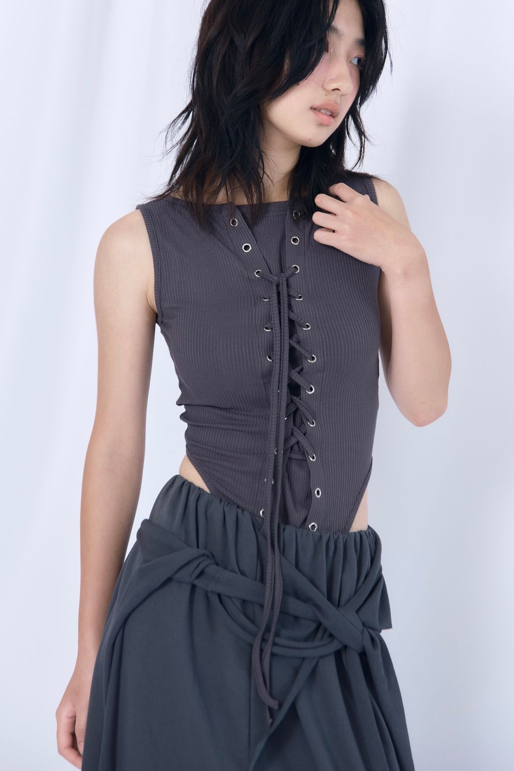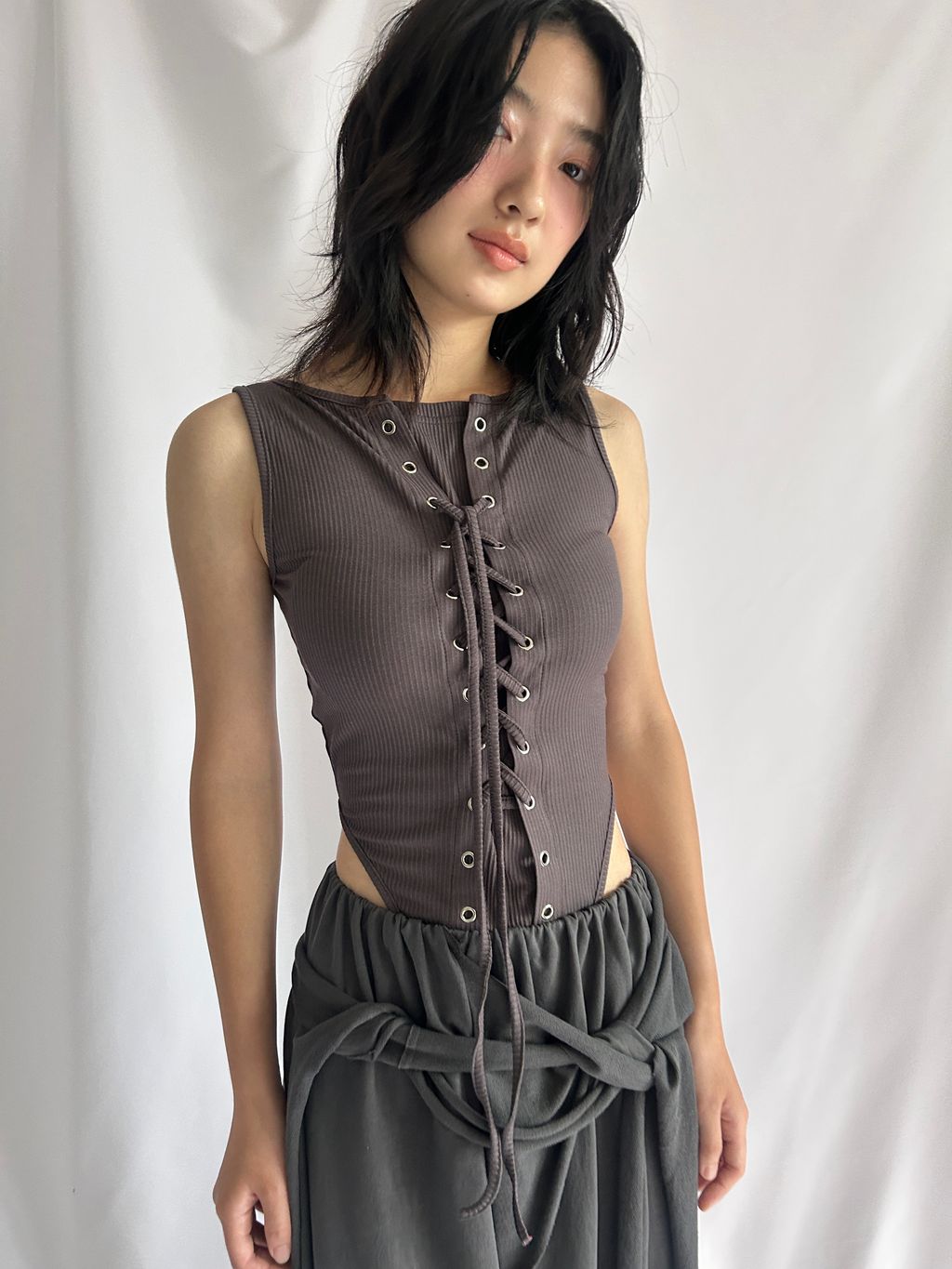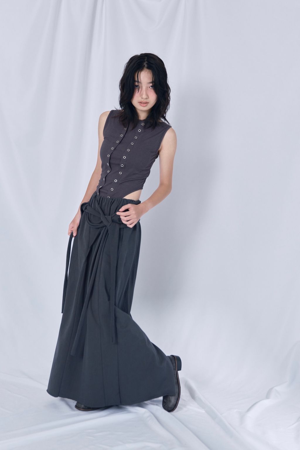 韓國設計師品牌 / 個性綁帶銀圈背心 - 灰