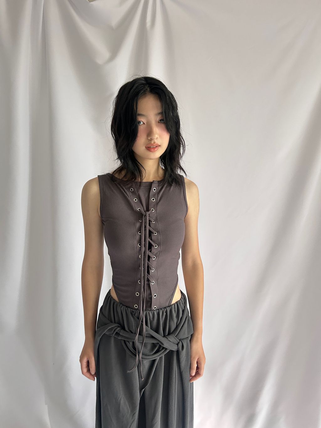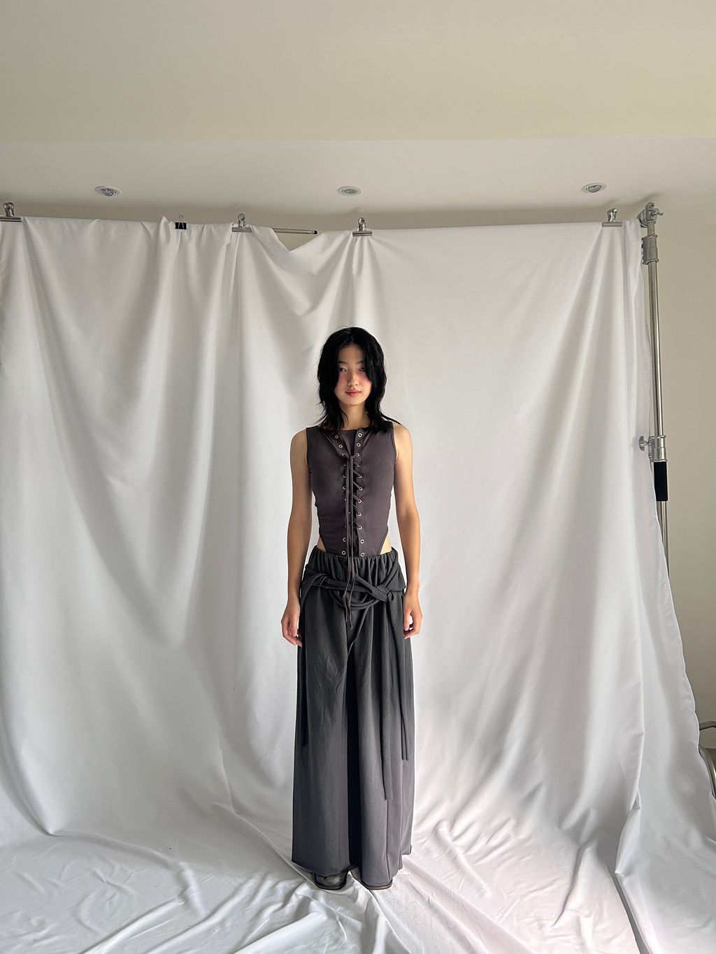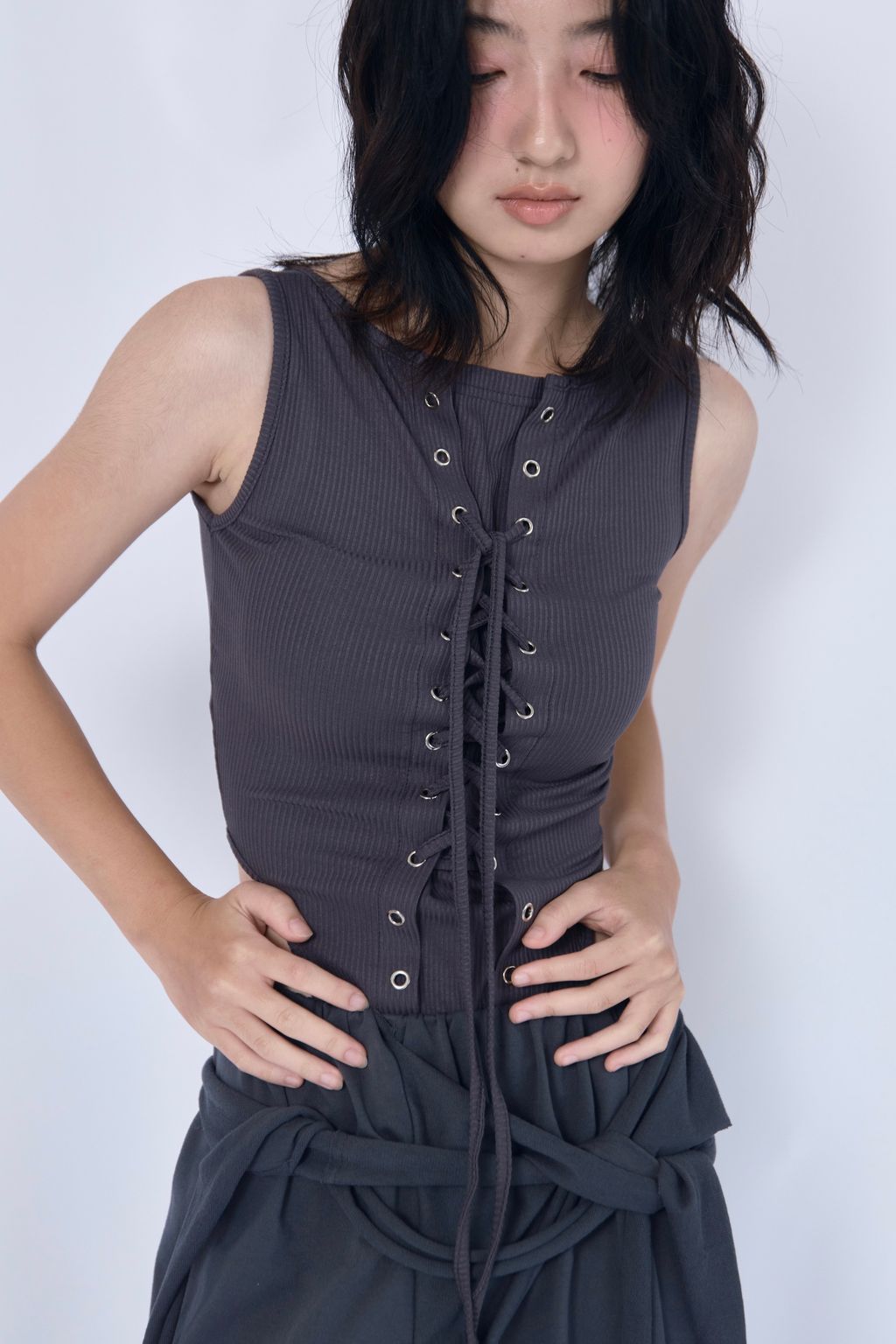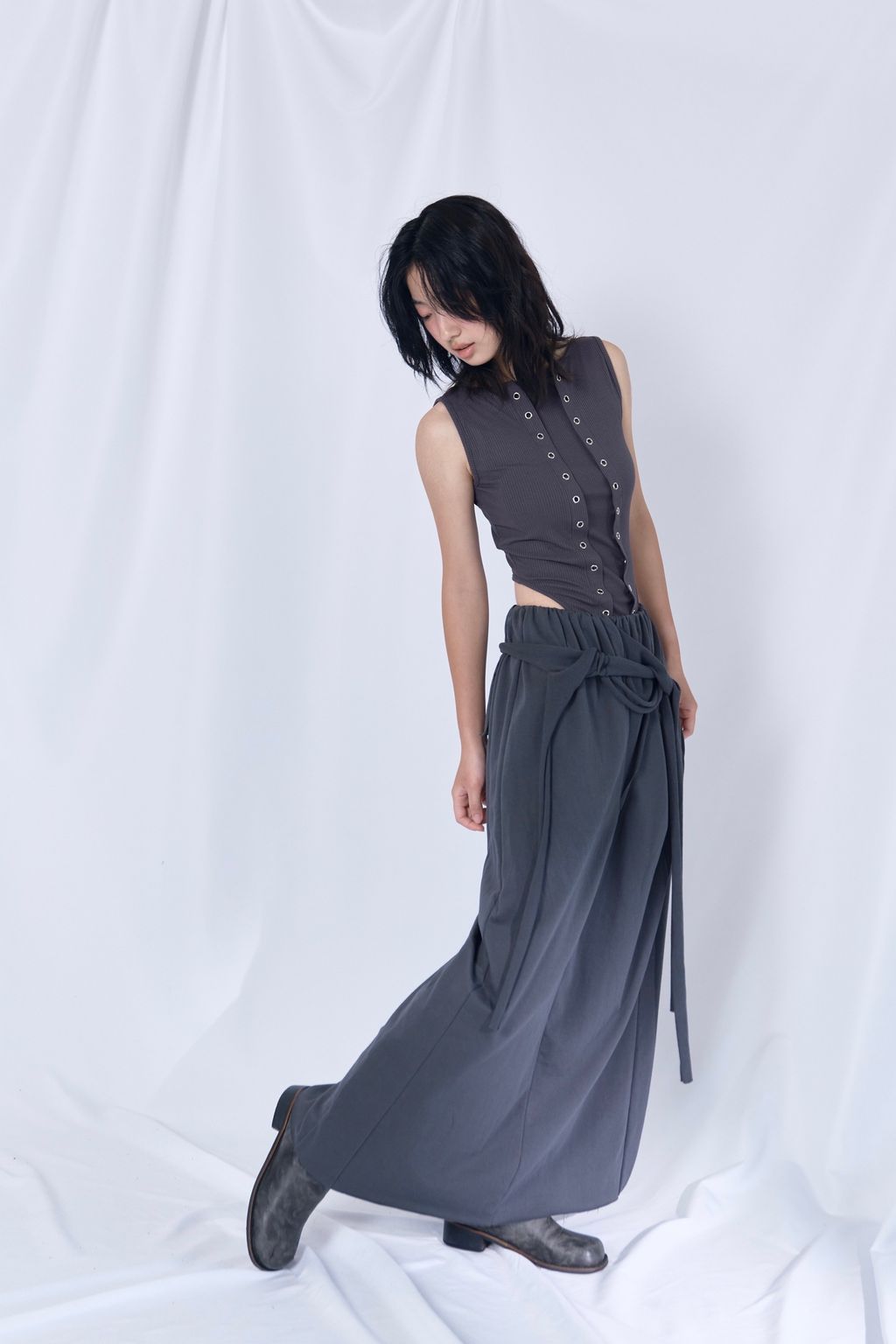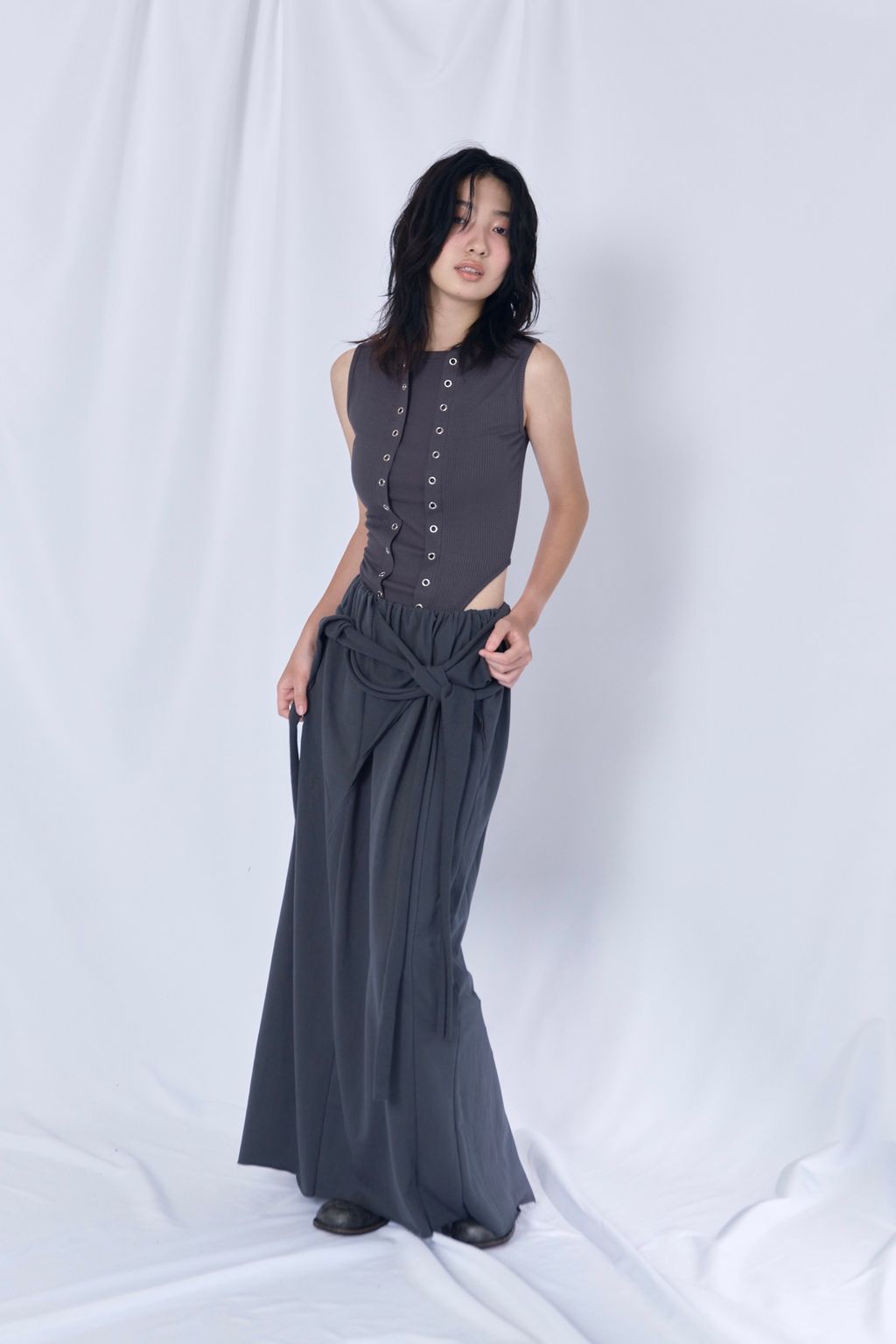 韓國設計師品牌 / 個性綁帶銀圈背心 - 灰