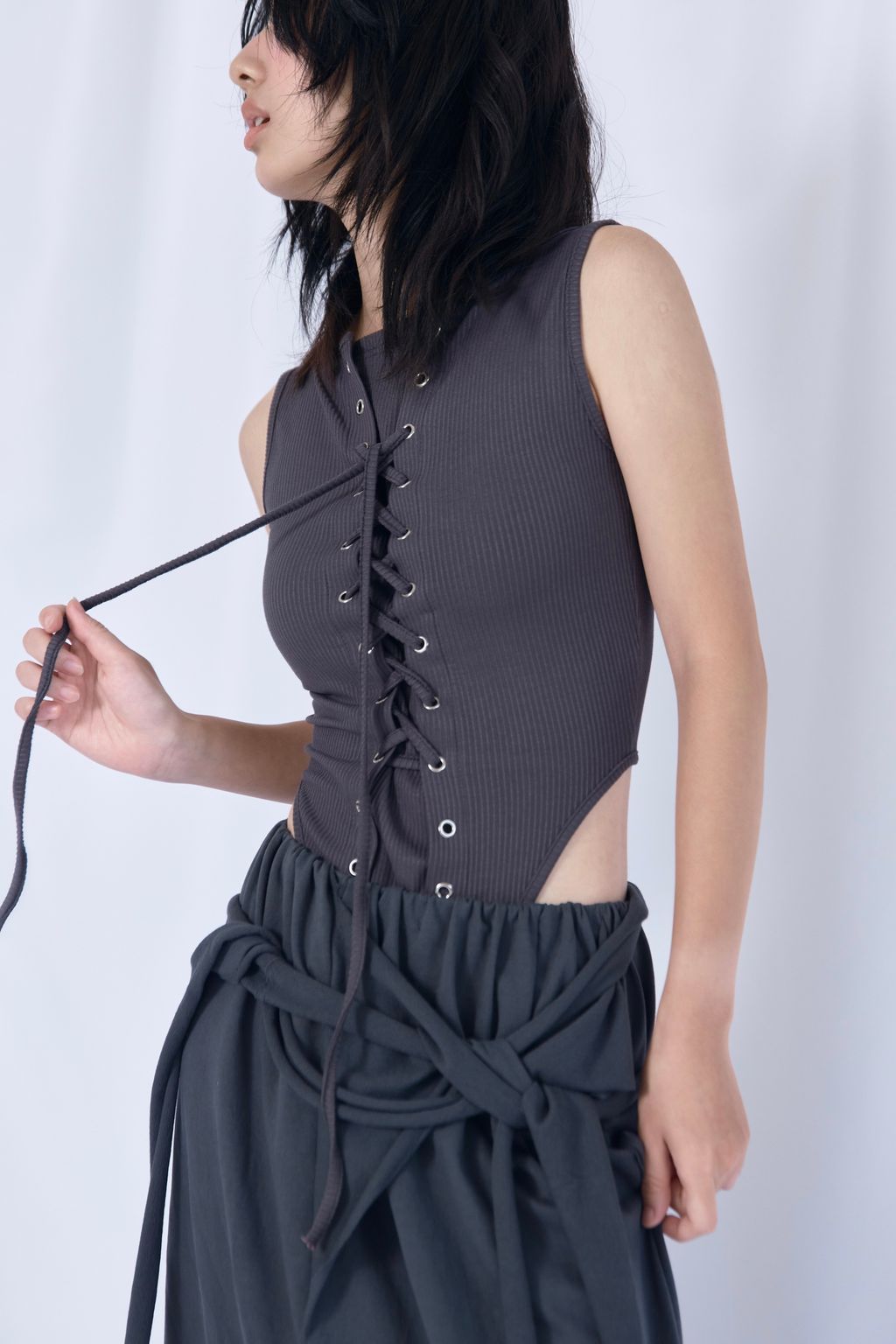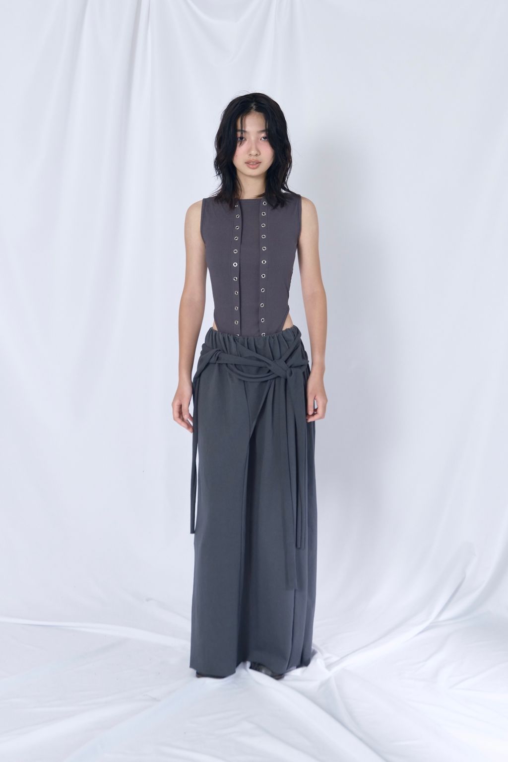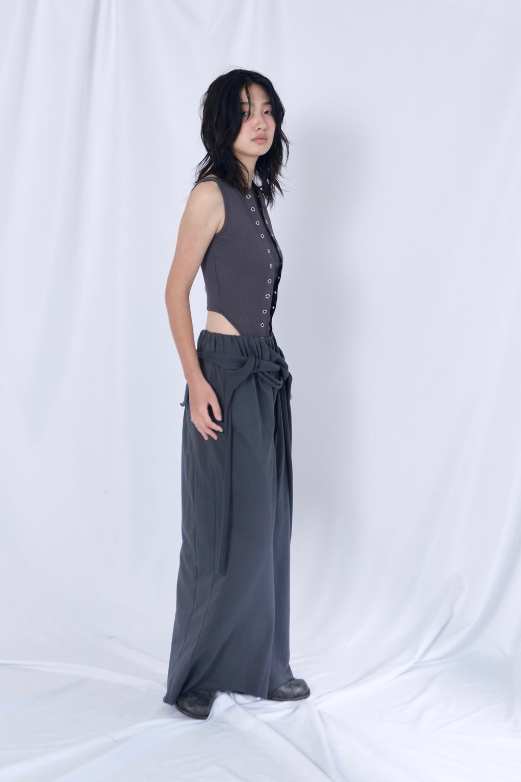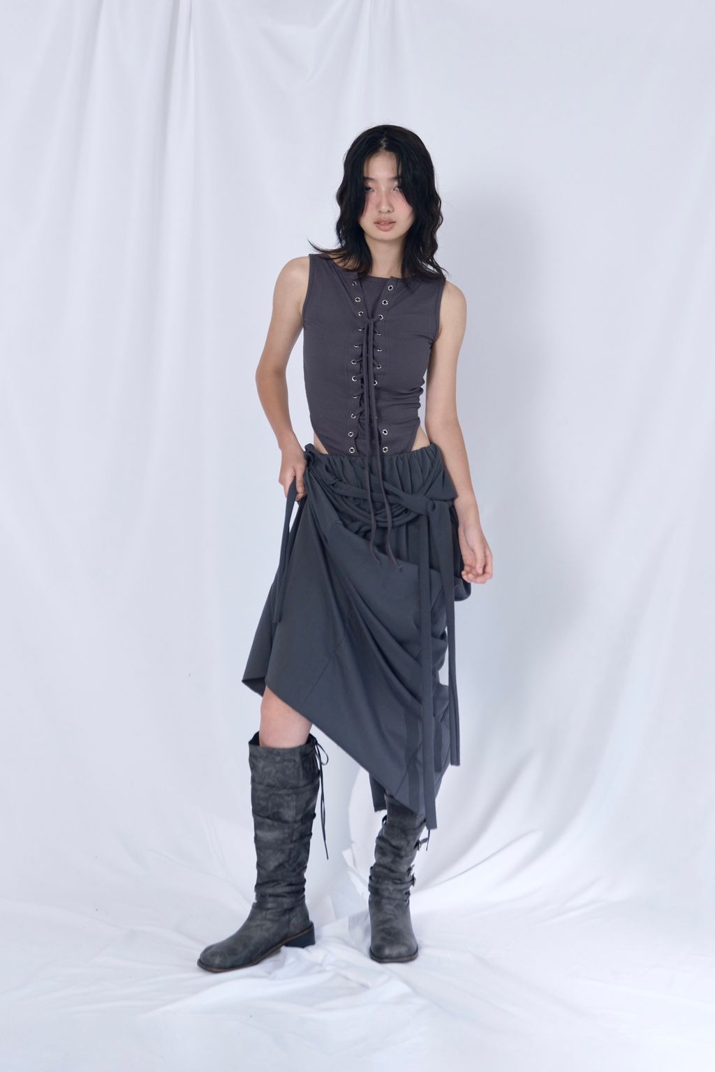 韓國設計師品牌 / 個性綁帶銀圈背心 - 灰