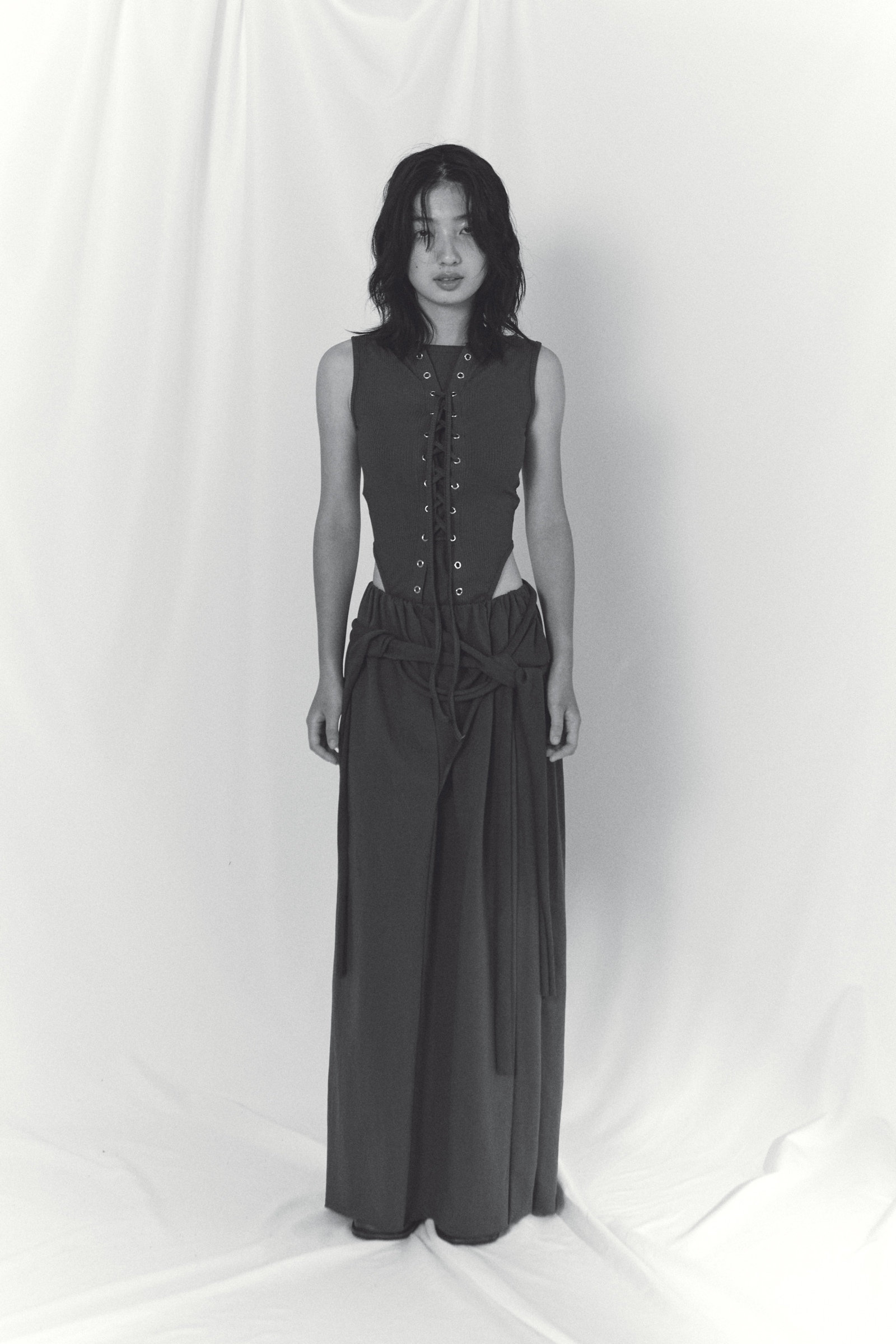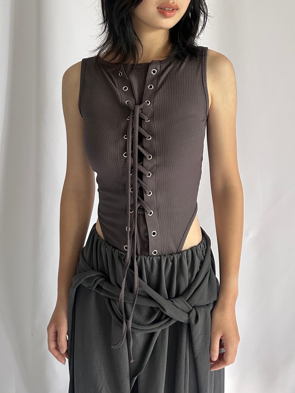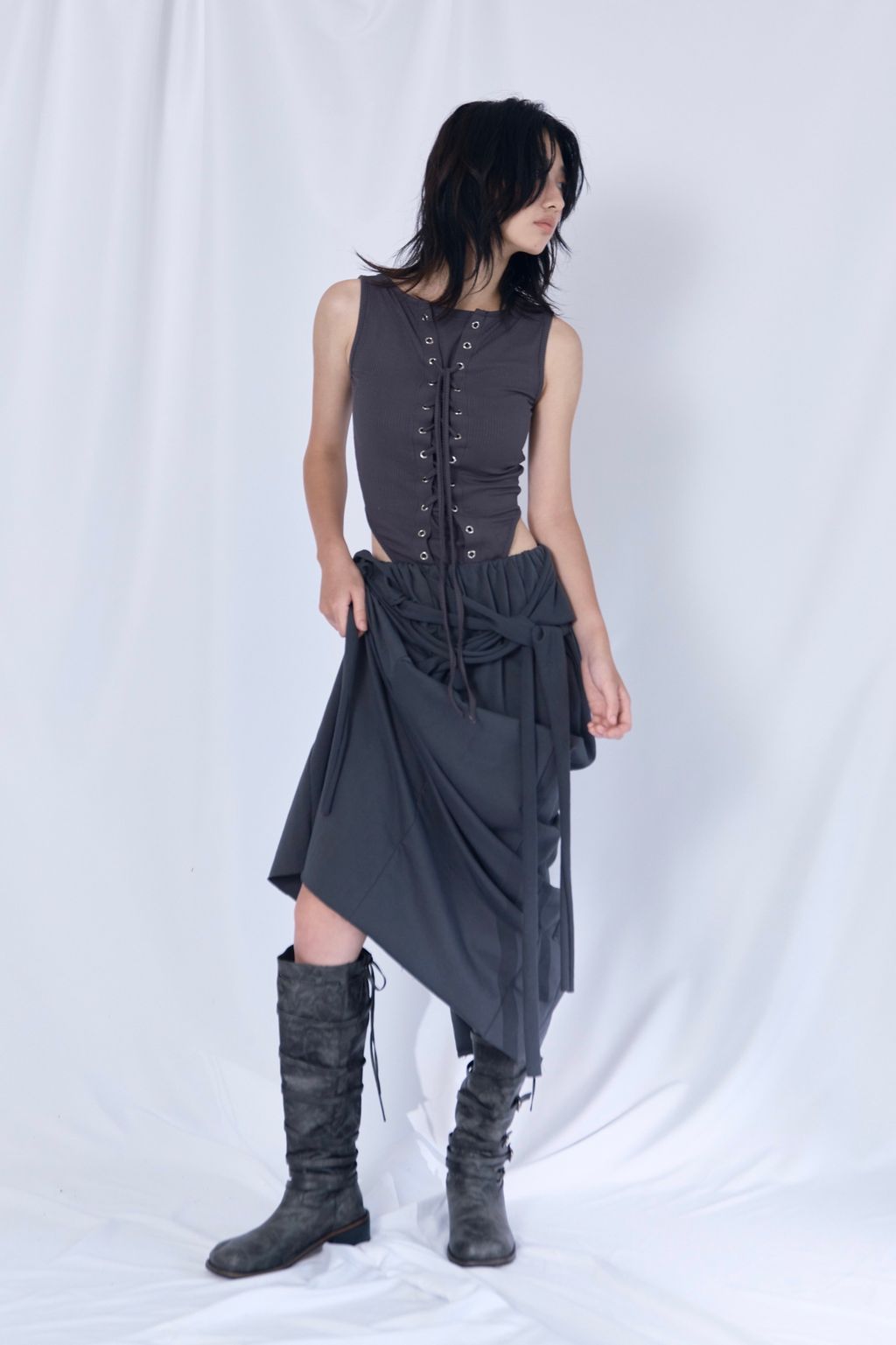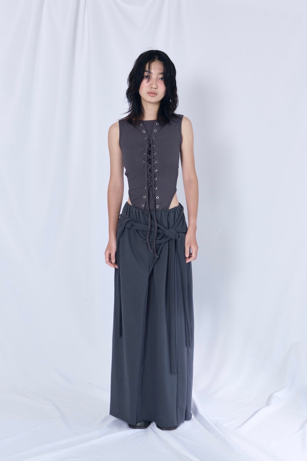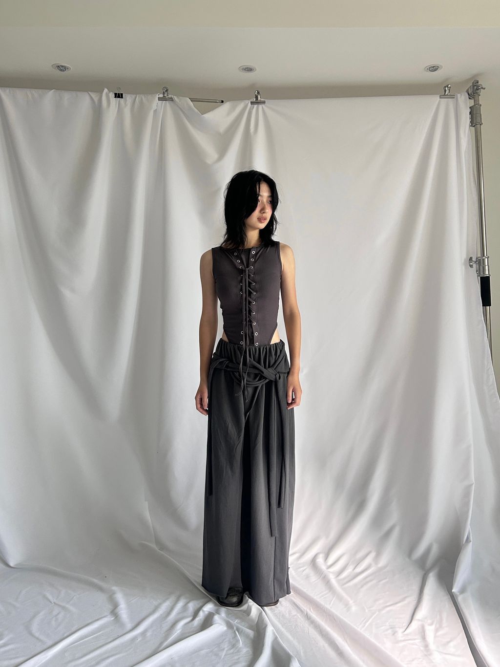 韓國設計師品牌 / 個性綁帶銀圈背心 - 灰