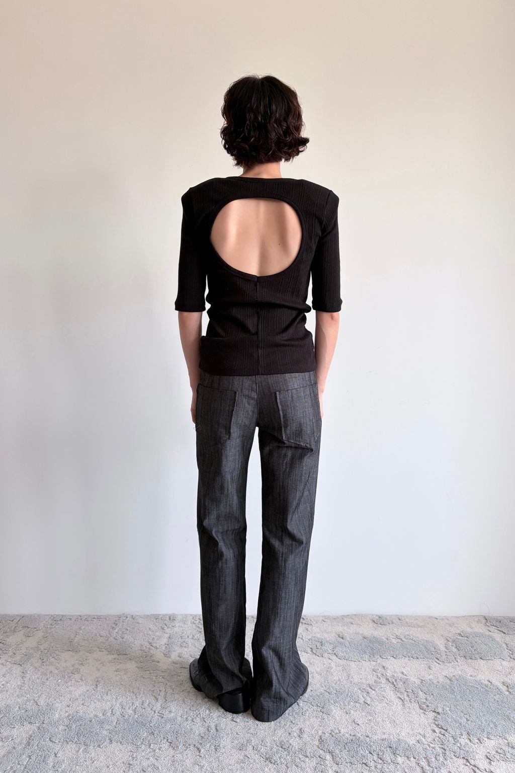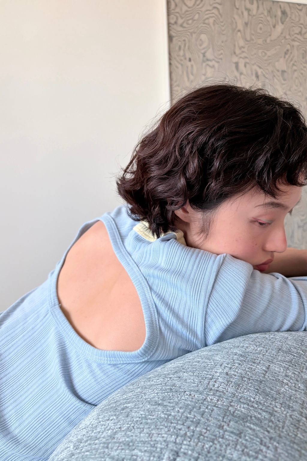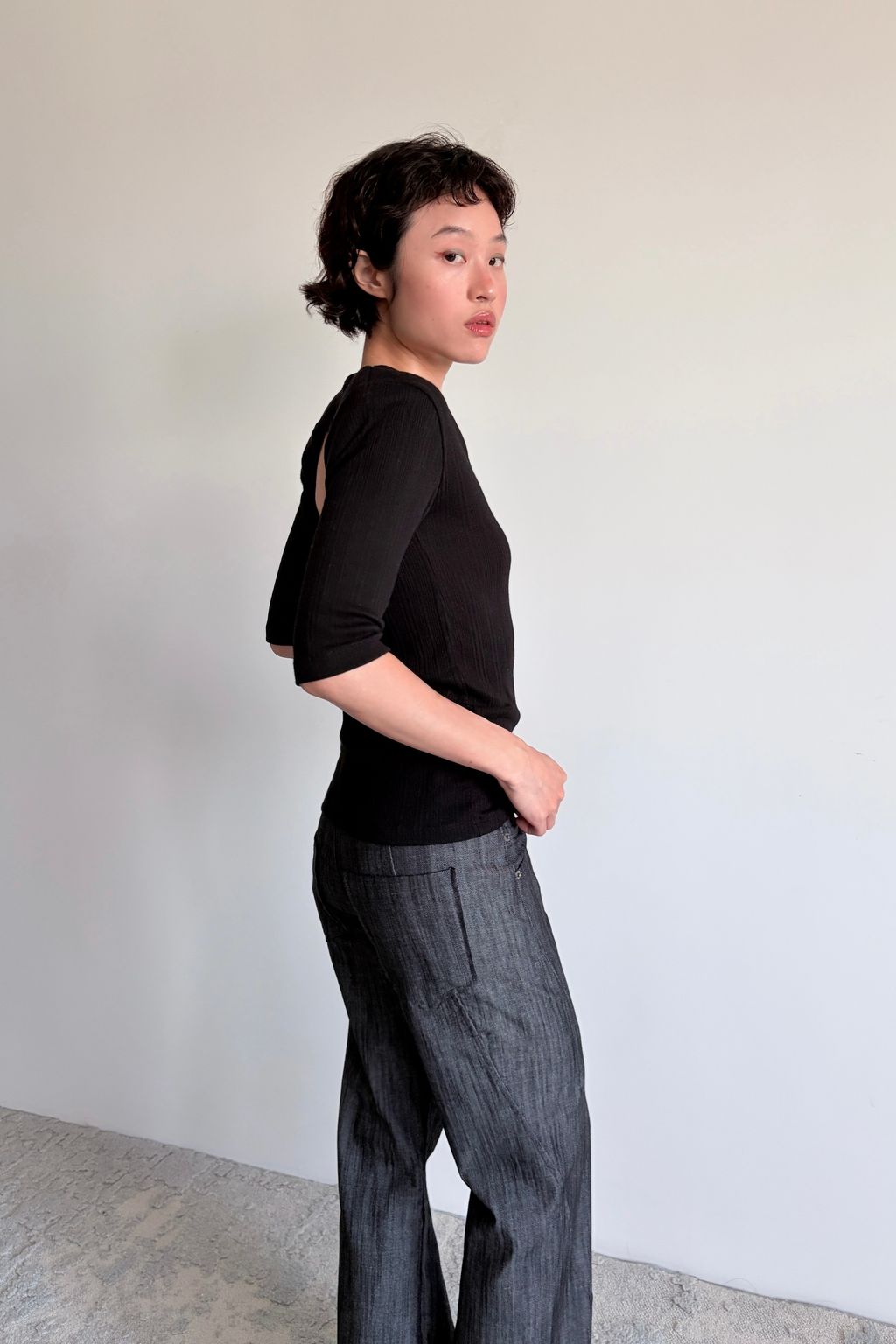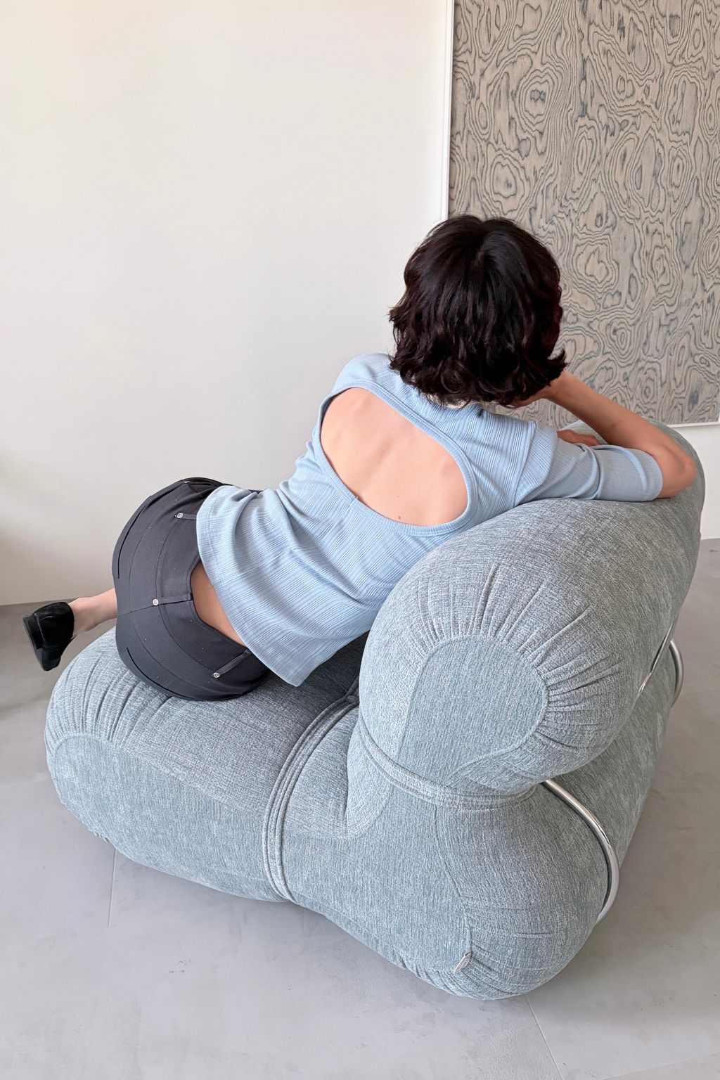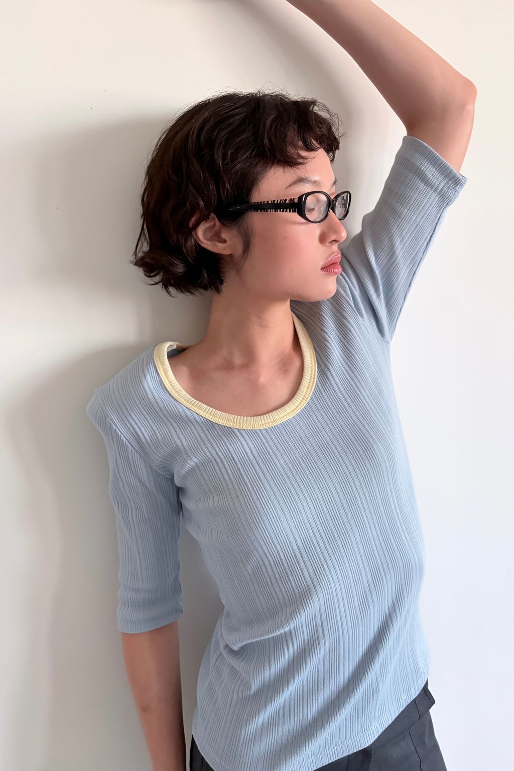 / 韓國設計師品牌 / 後挖背撞色墊肩上衣 - 藍 / 黑