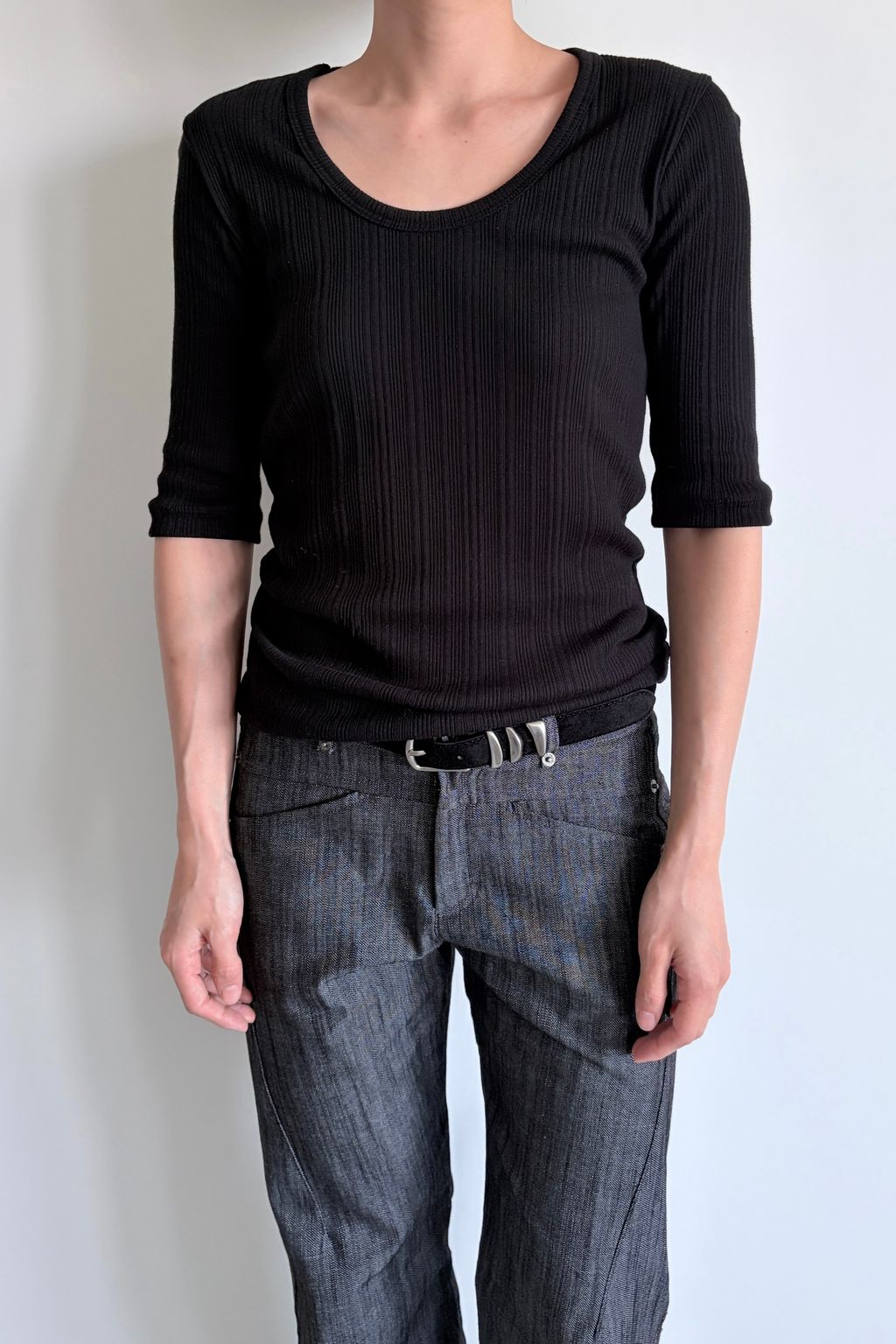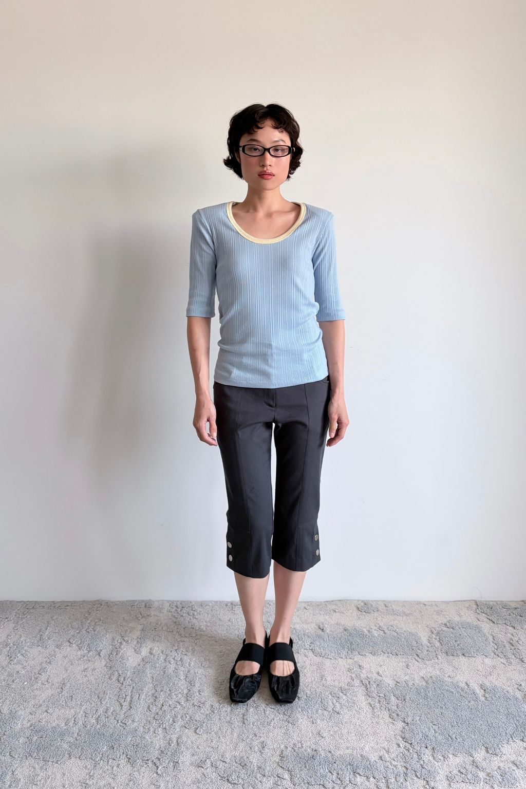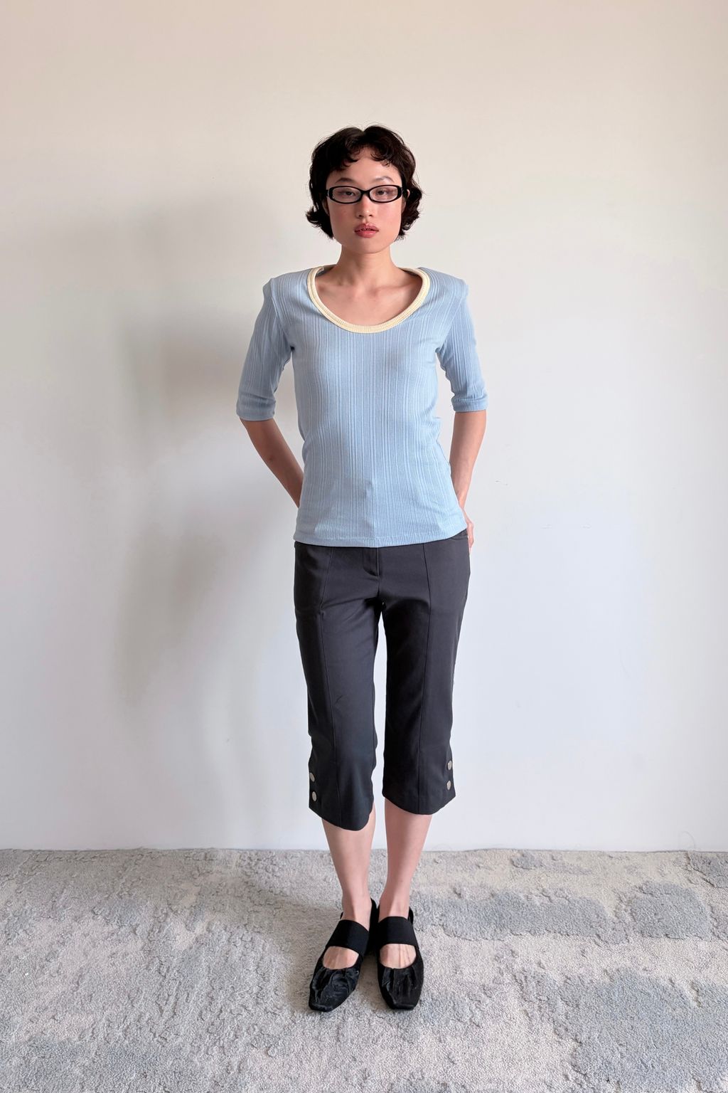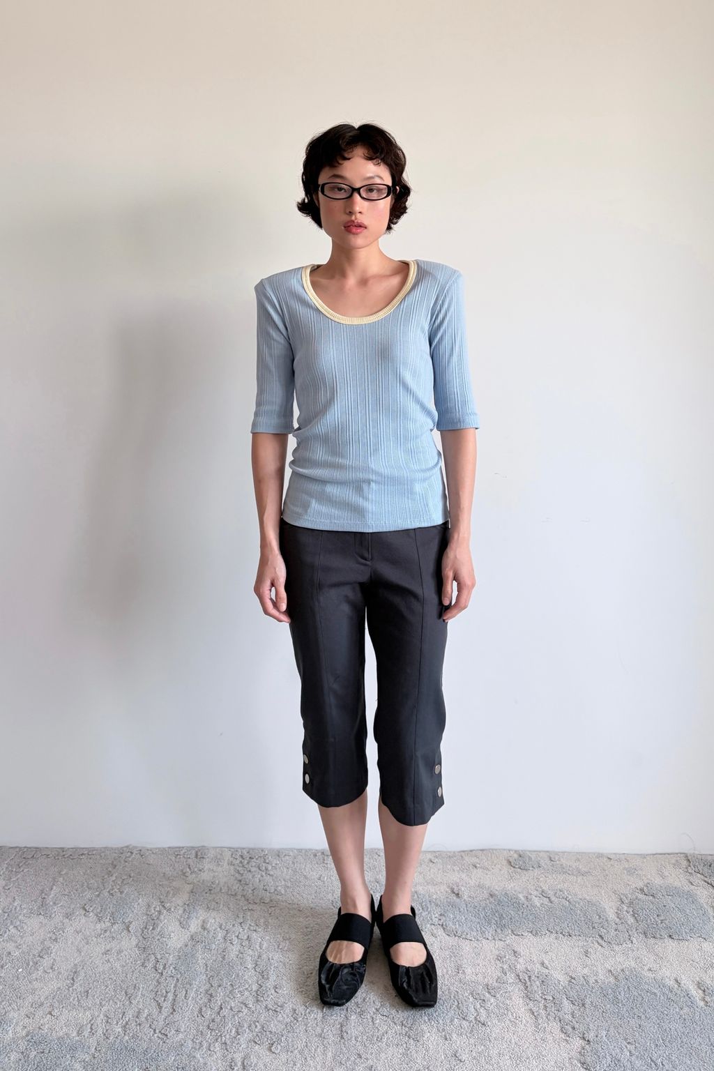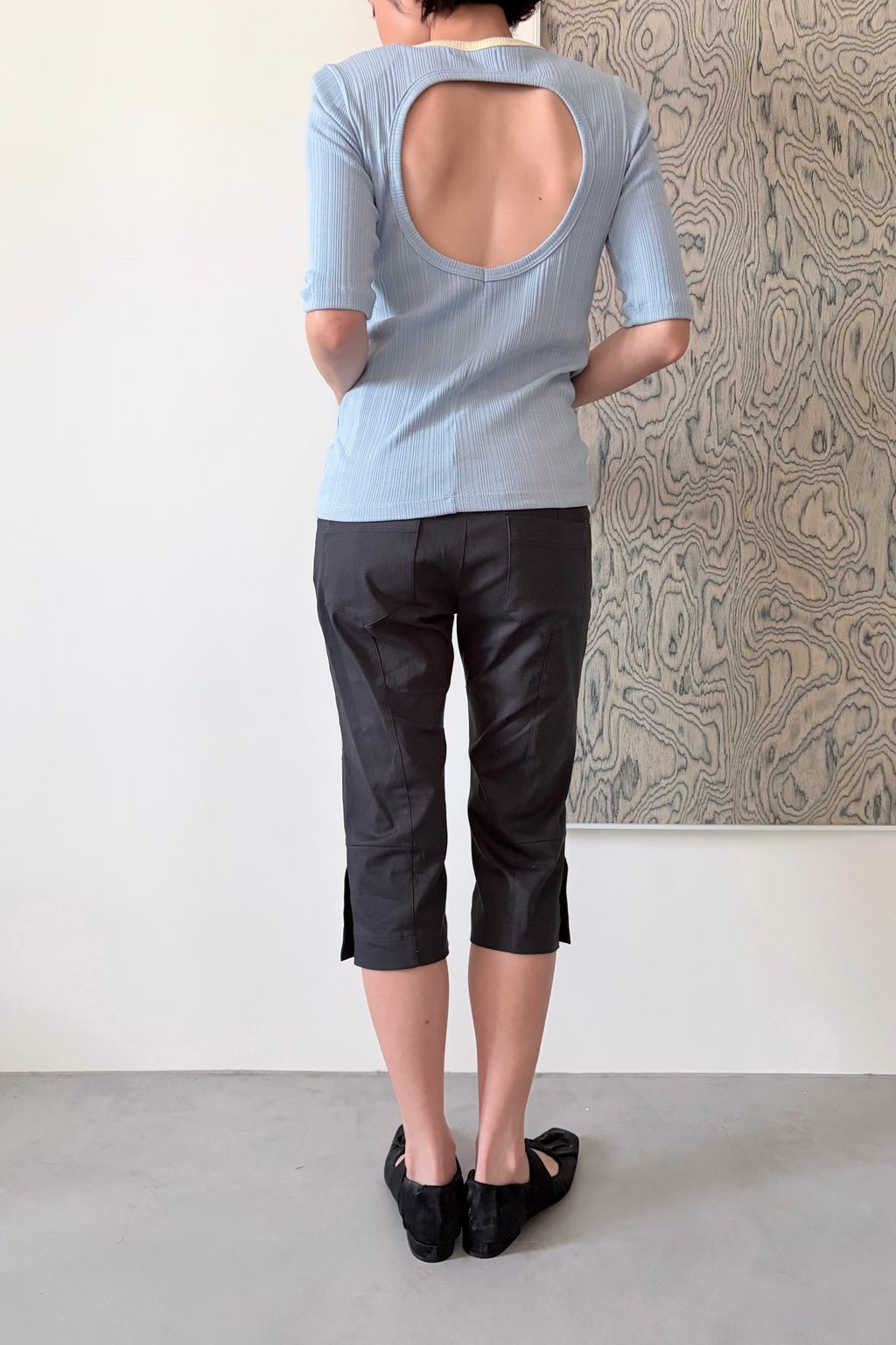 / 韓國設計師品牌 / 後挖背撞色墊肩上衣 - 藍 / 黑