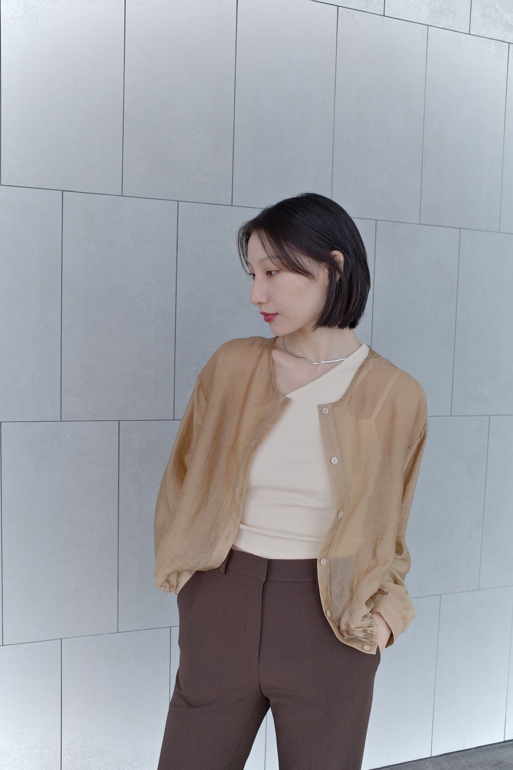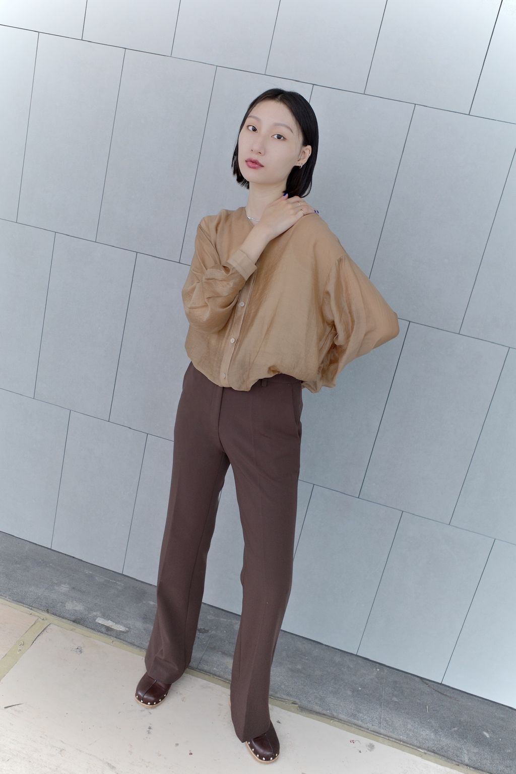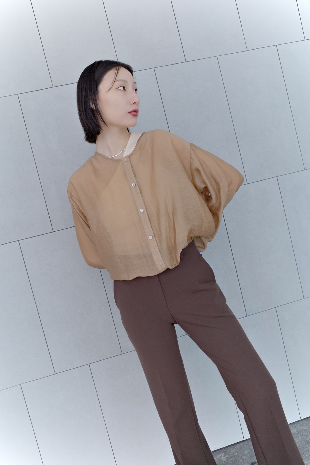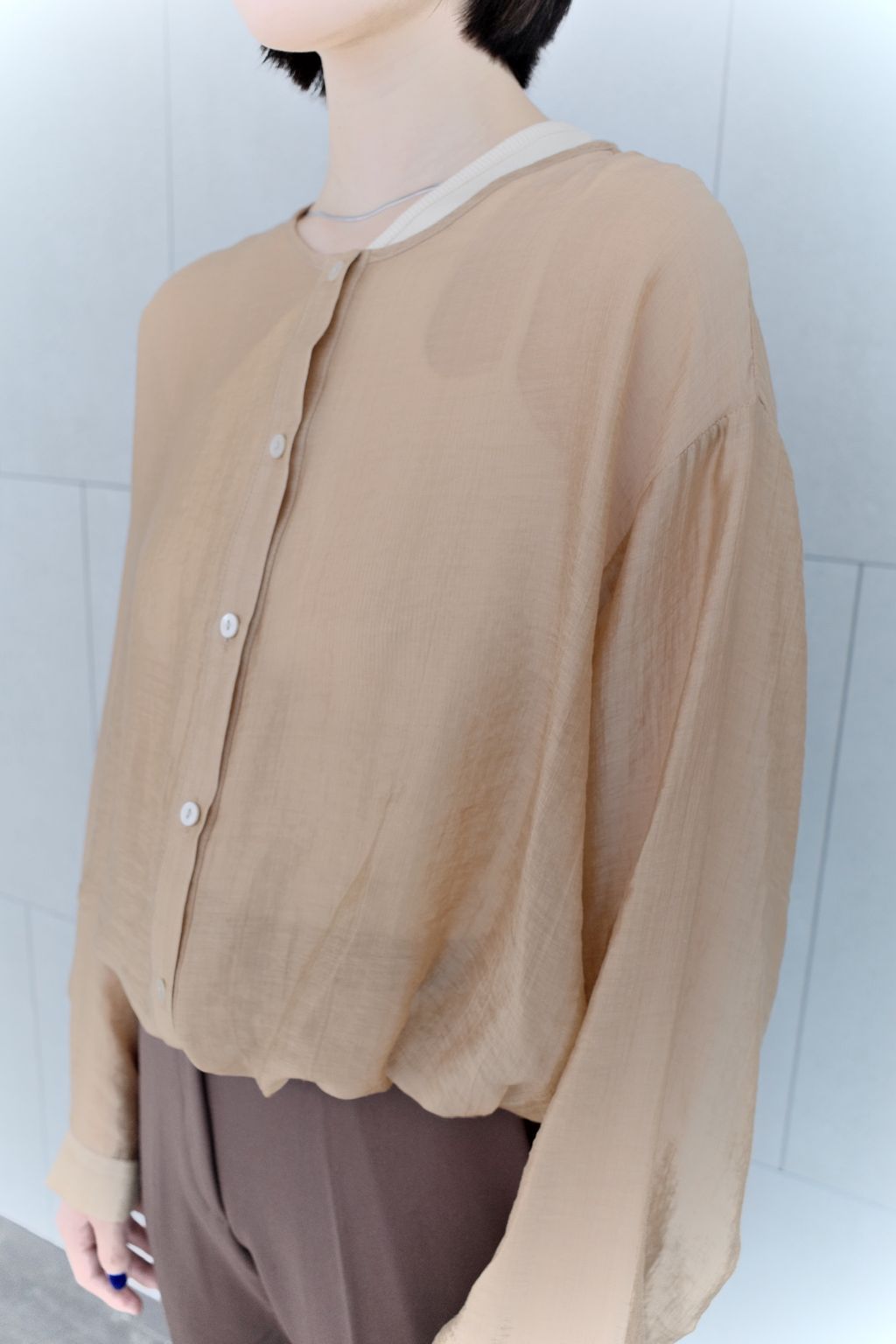 透膚微光澤襯衫-咖