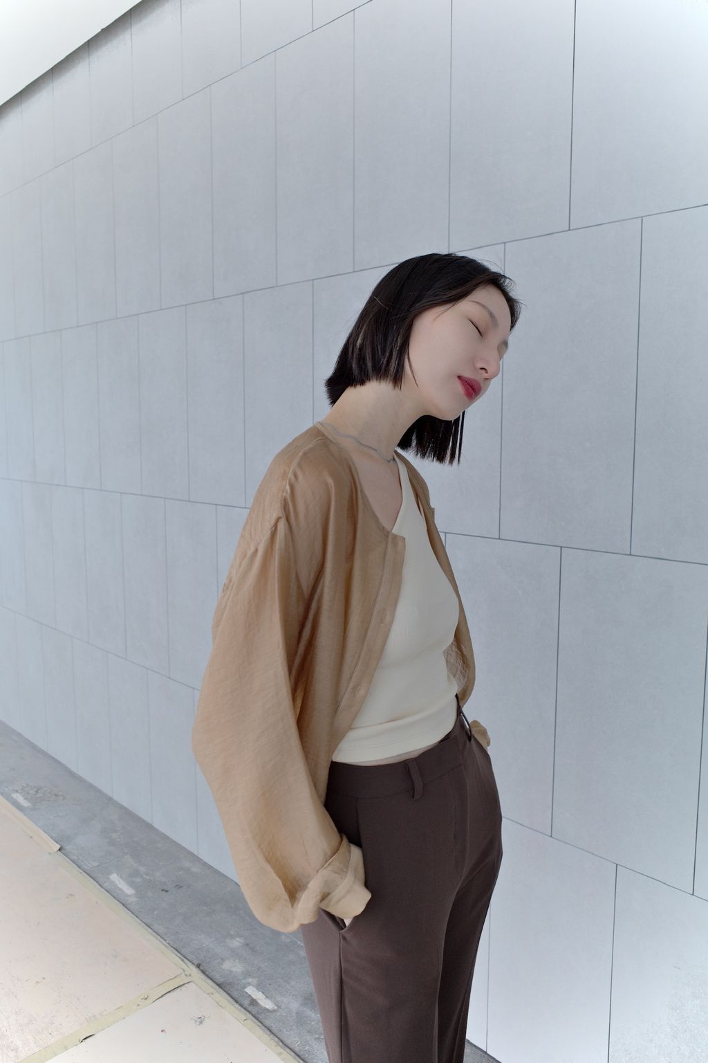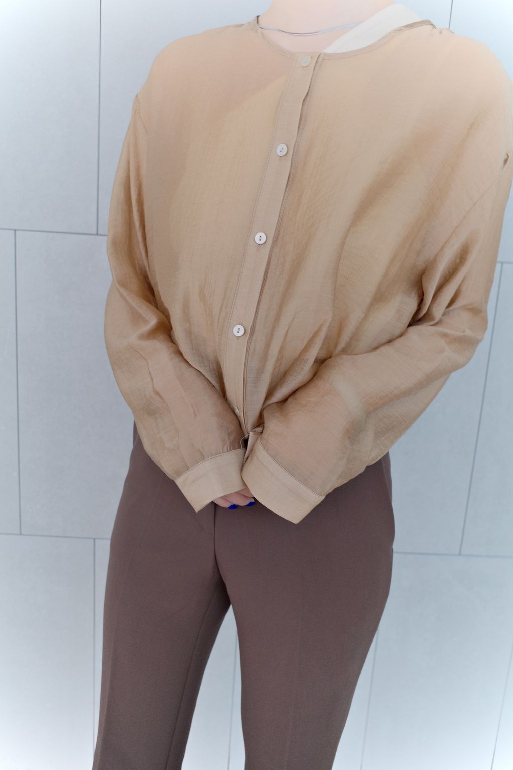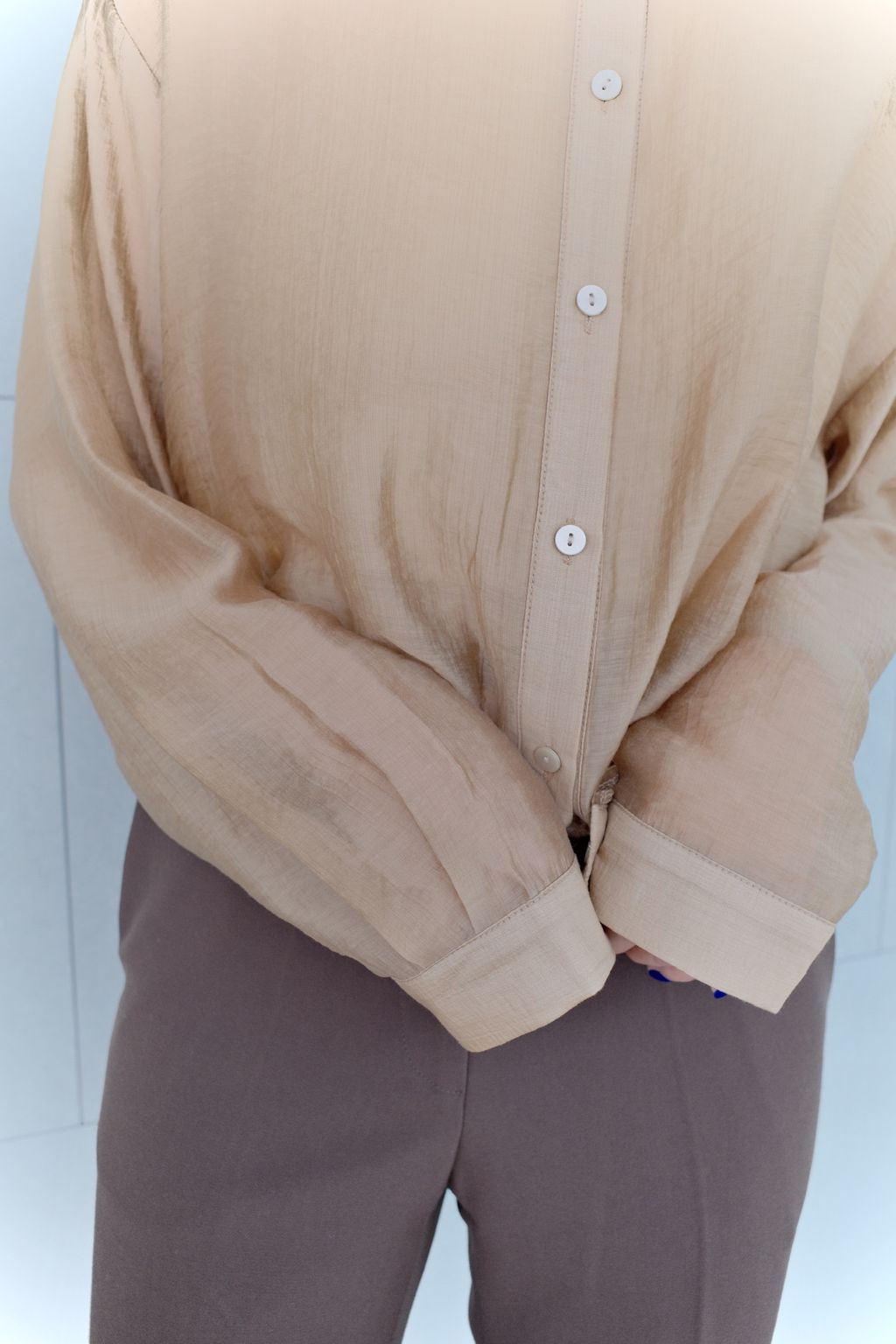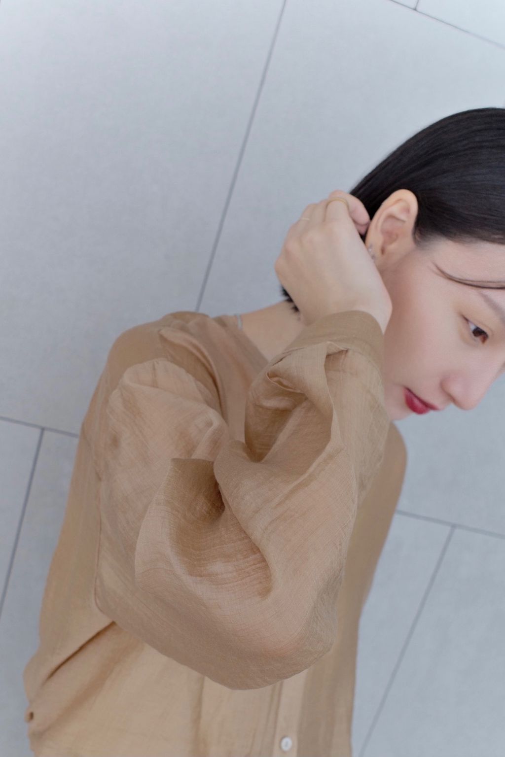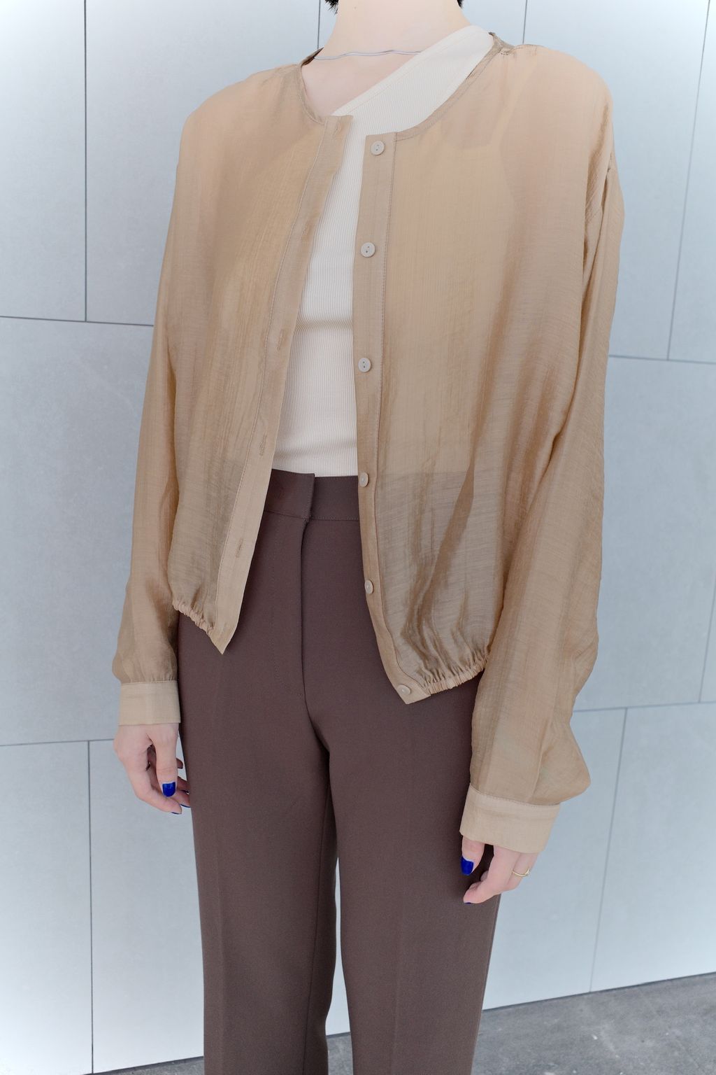 透膚微光澤襯衫-咖