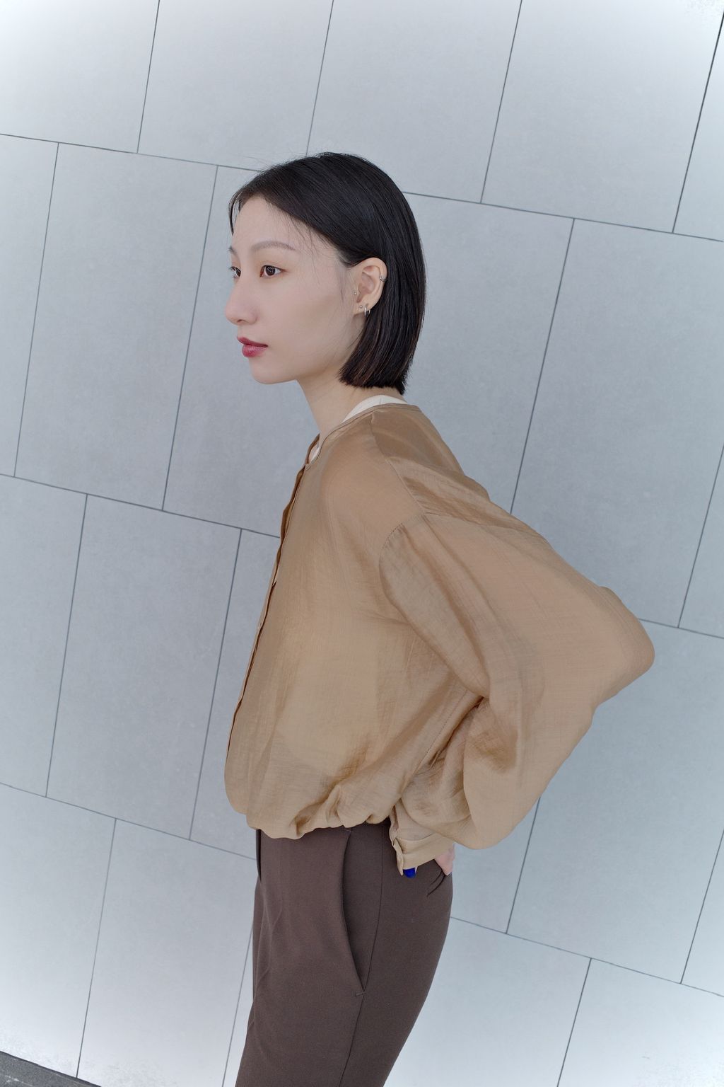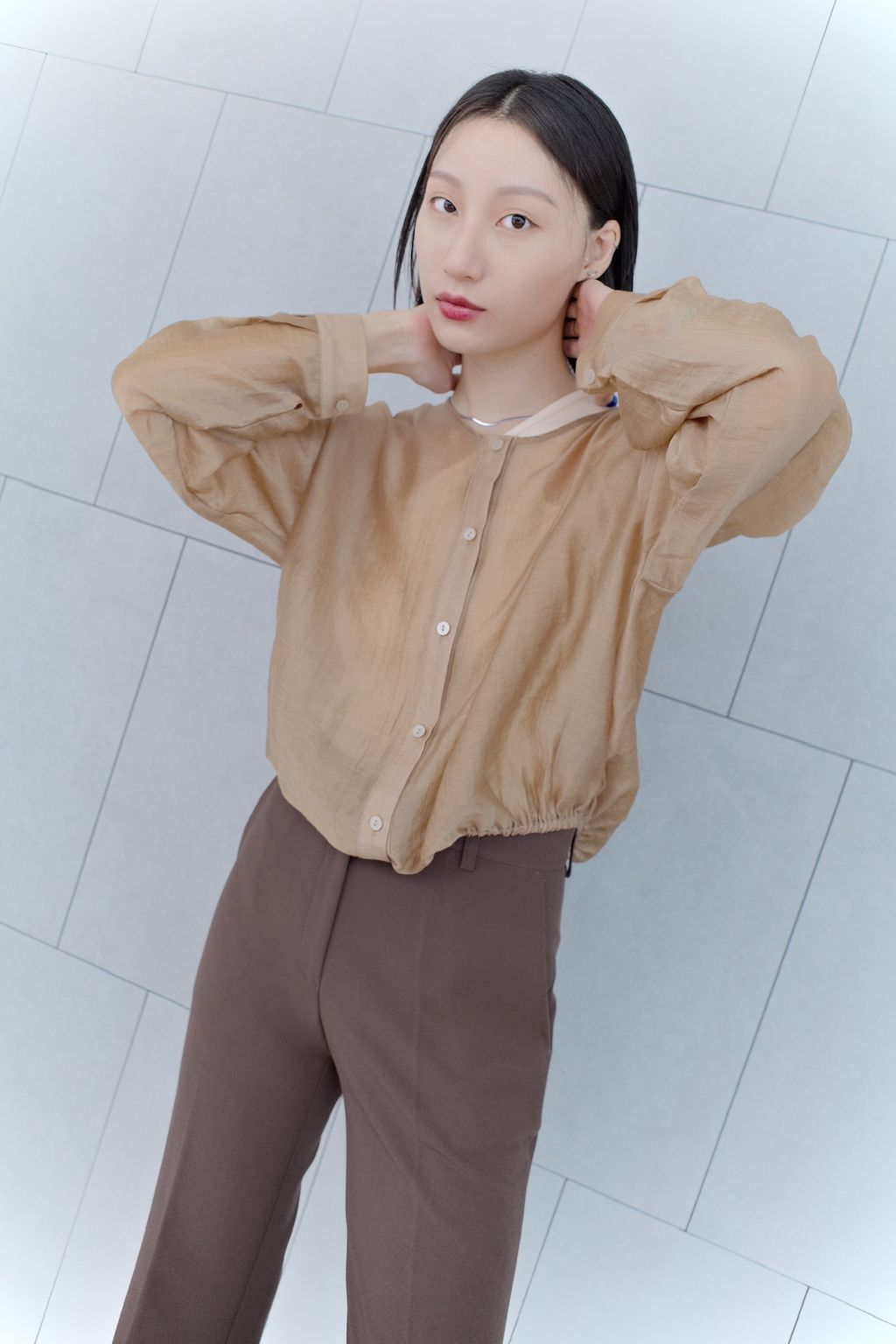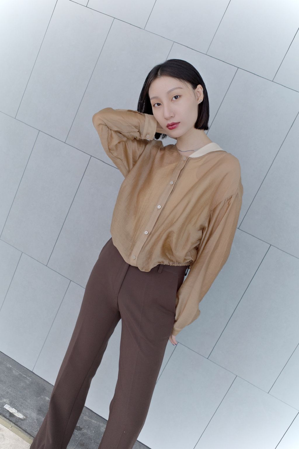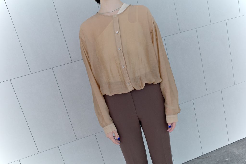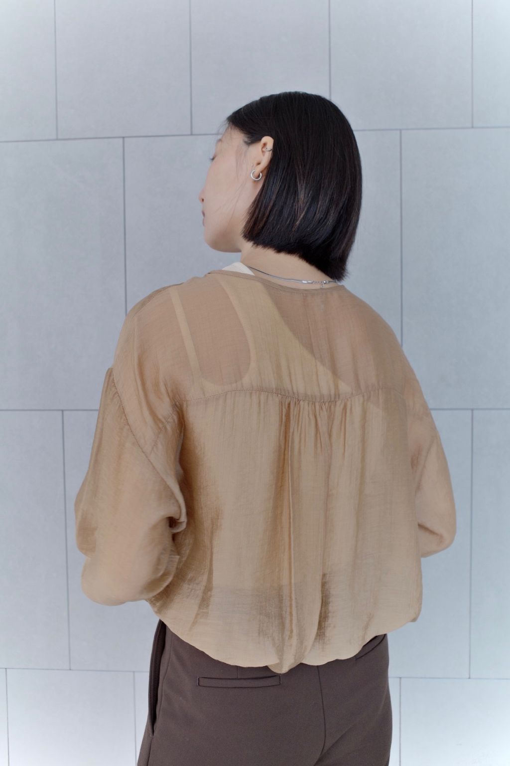 Mercerizing Sheer Crop Blouse - Brown