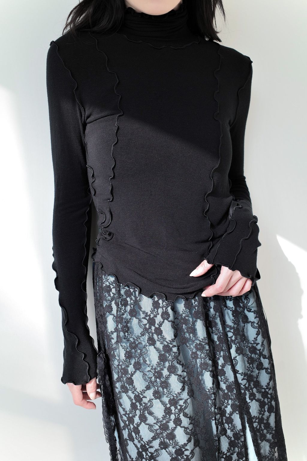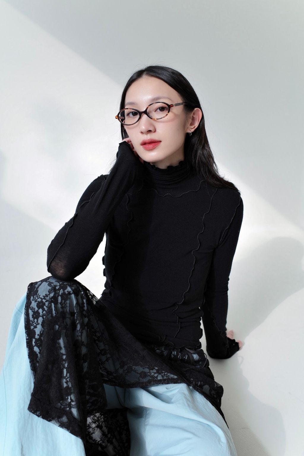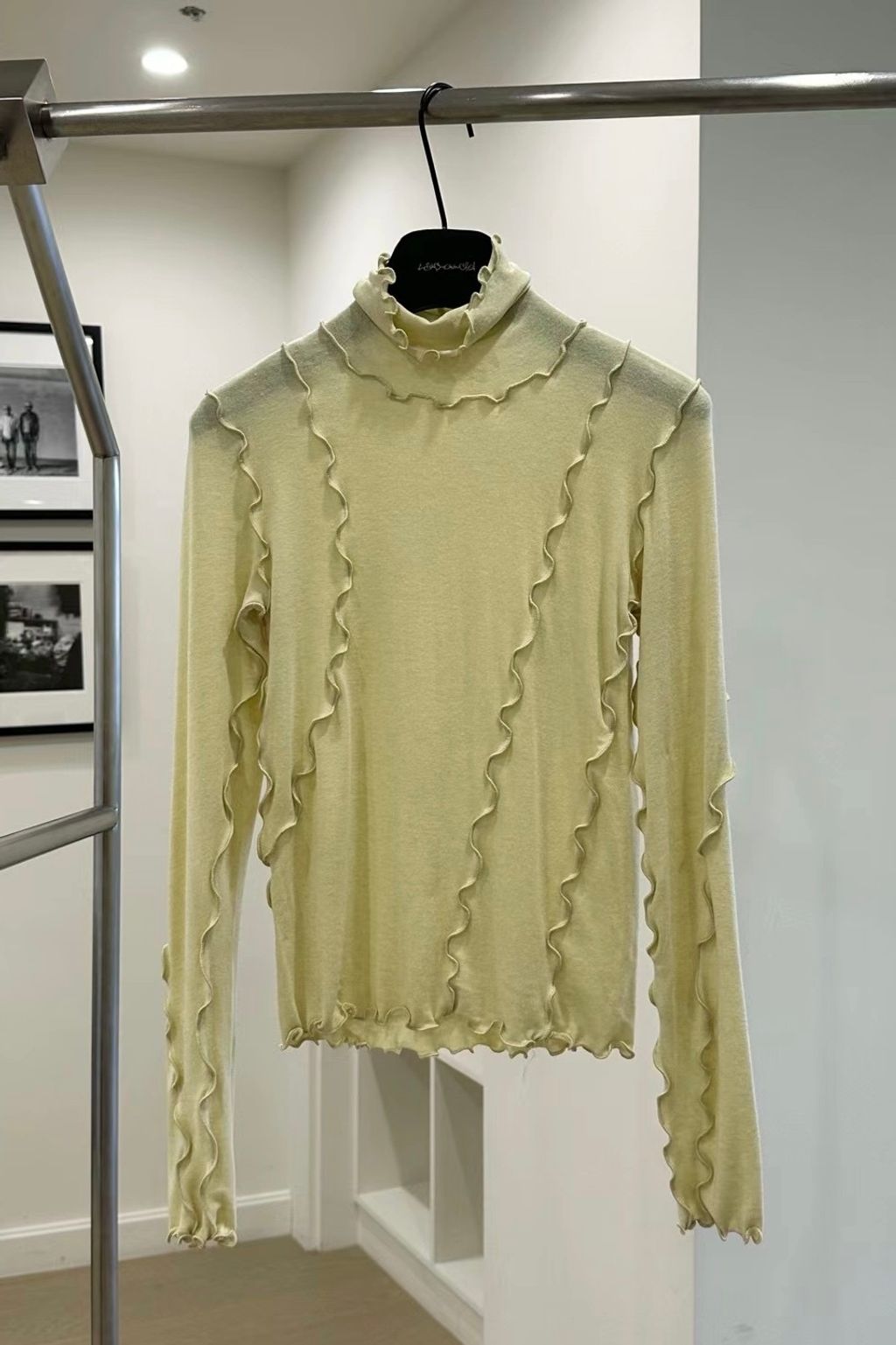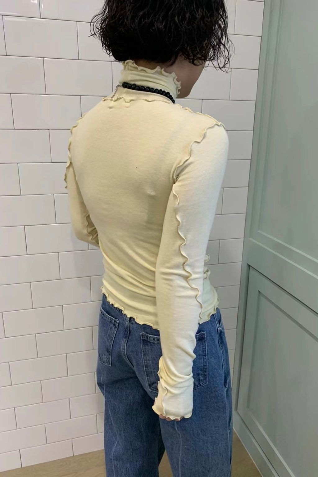 / 韓國設計師品牌 / 捲邊木耳紋高領上衣 - 黑色 / 薑黃色(整件有彈性)