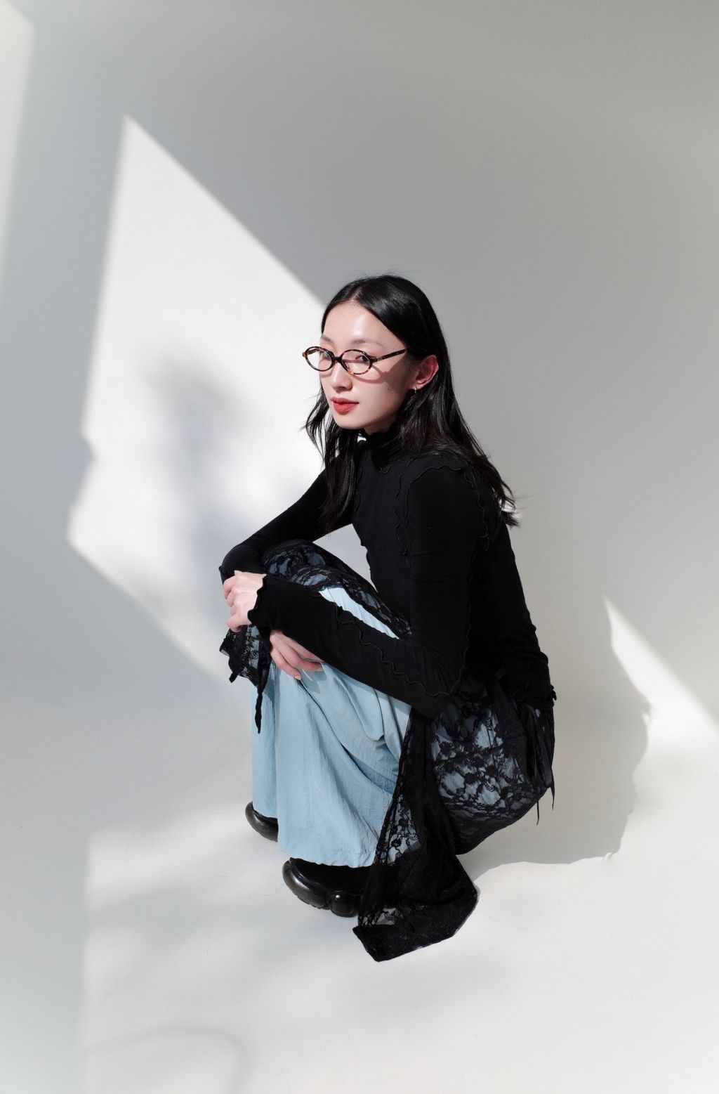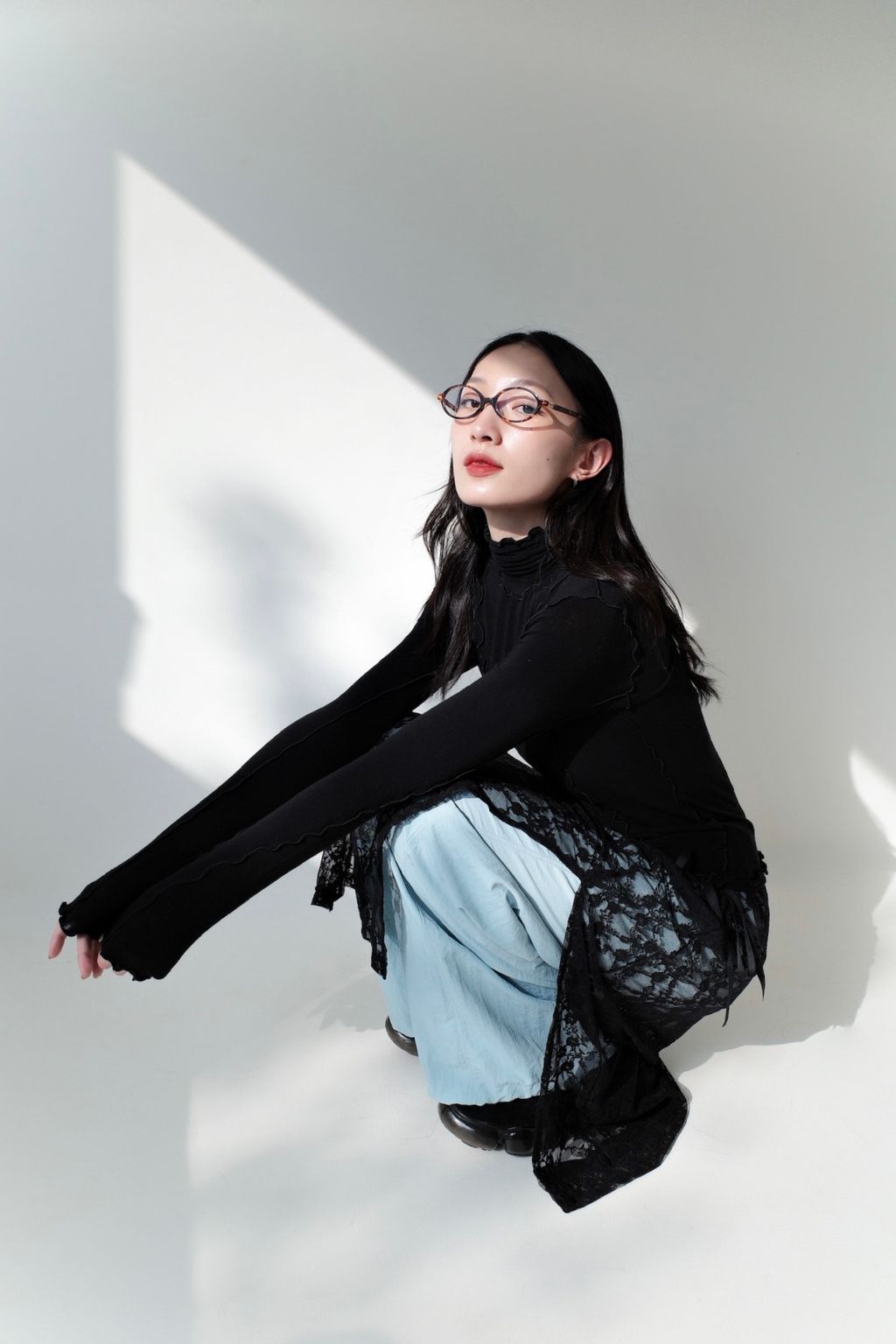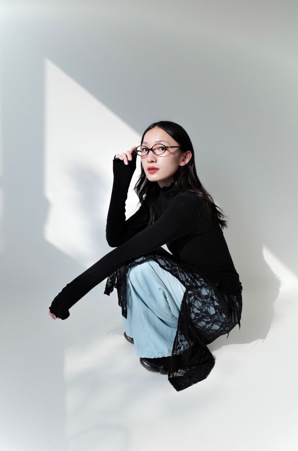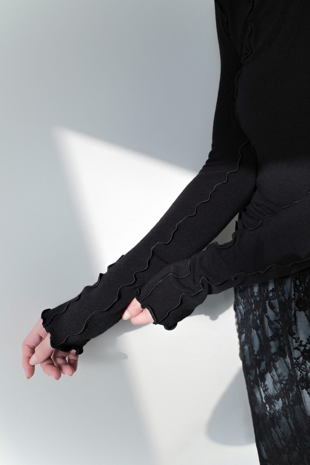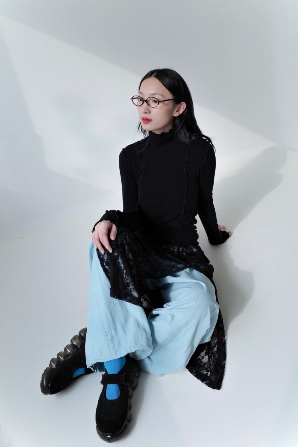 / 韓國設計師品牌 / 捲邊木耳紋高領上衣 - 黑色 / 薑黃色(整件有彈性)