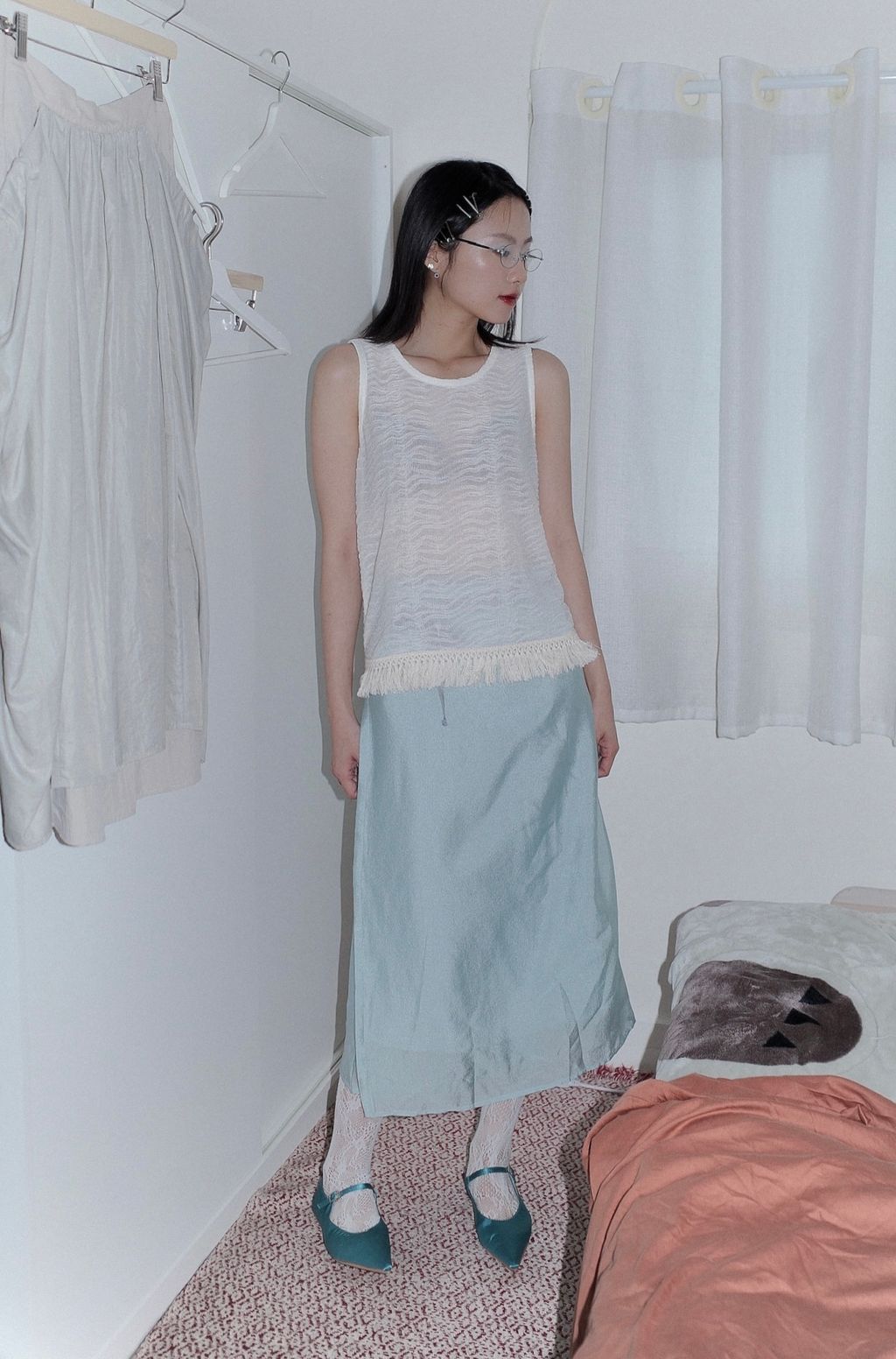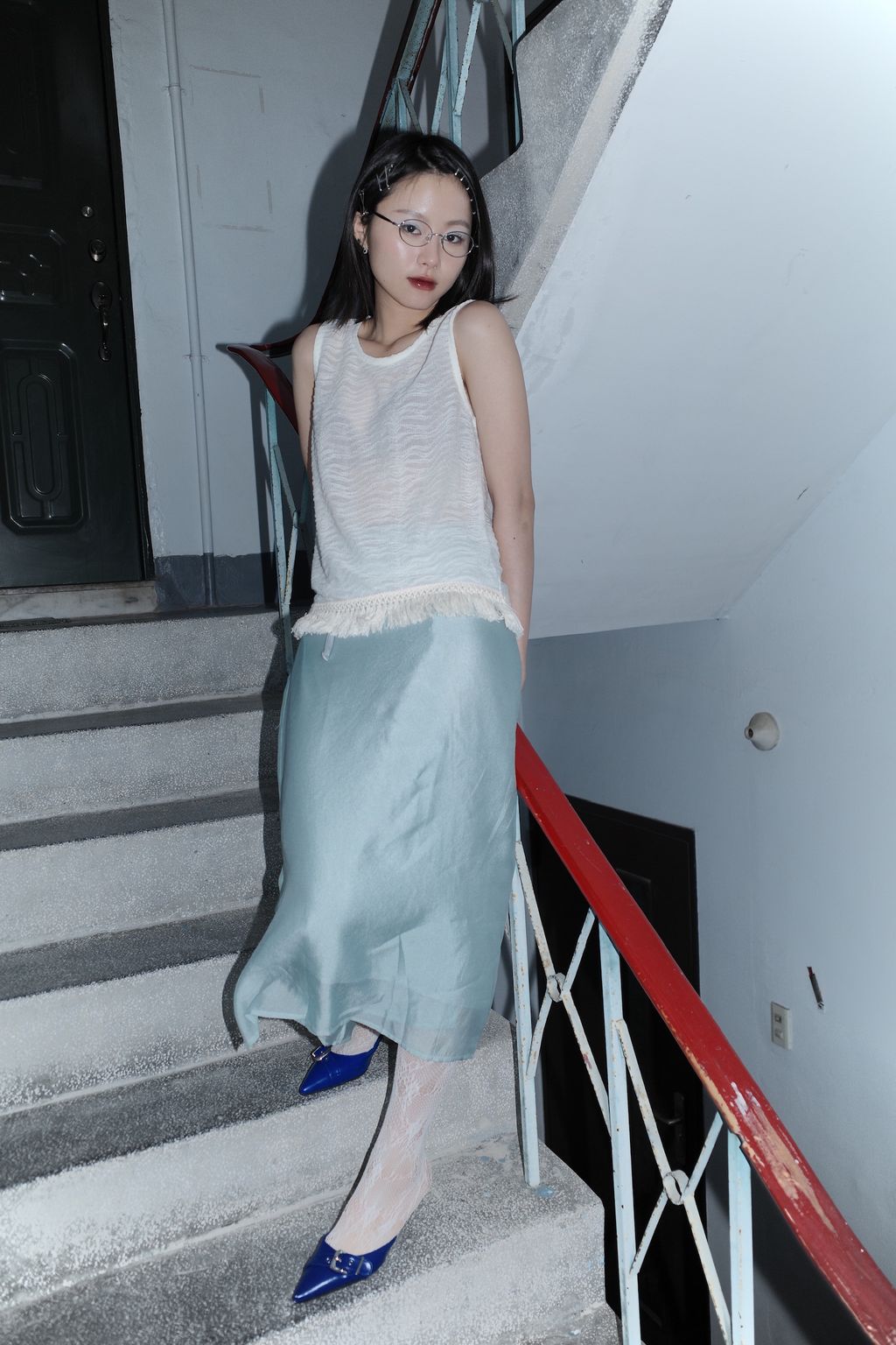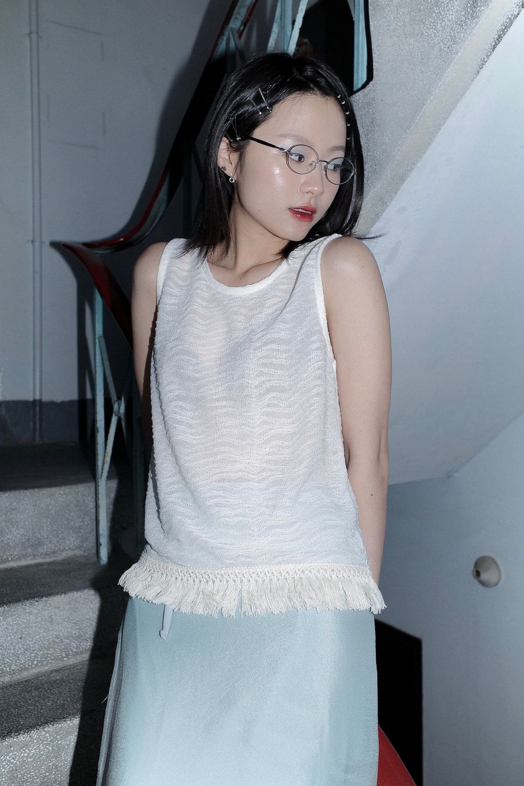 Ripple Tassel Sheer Sleeveless Vest - Green