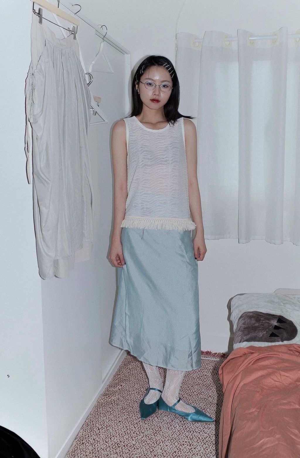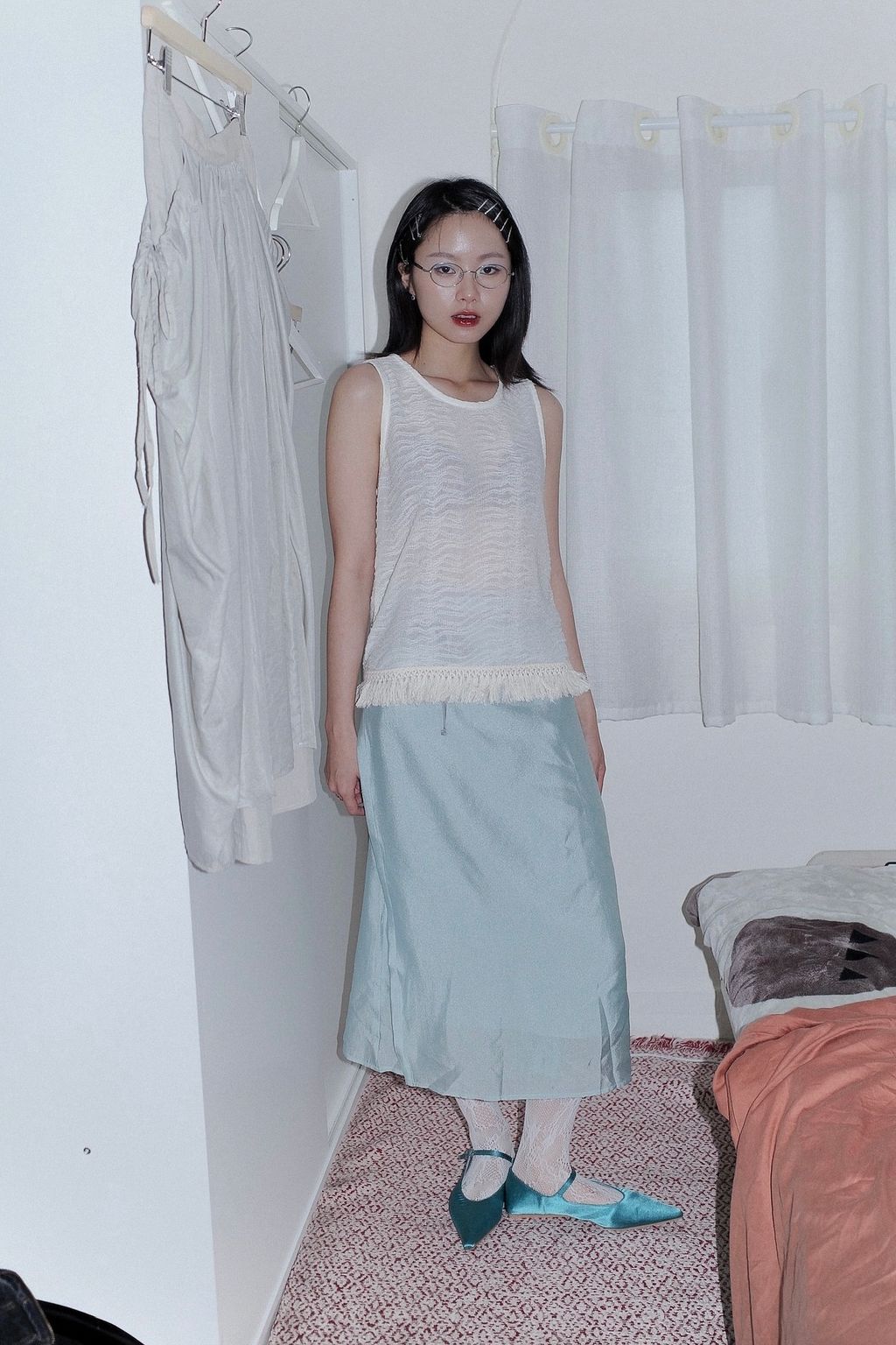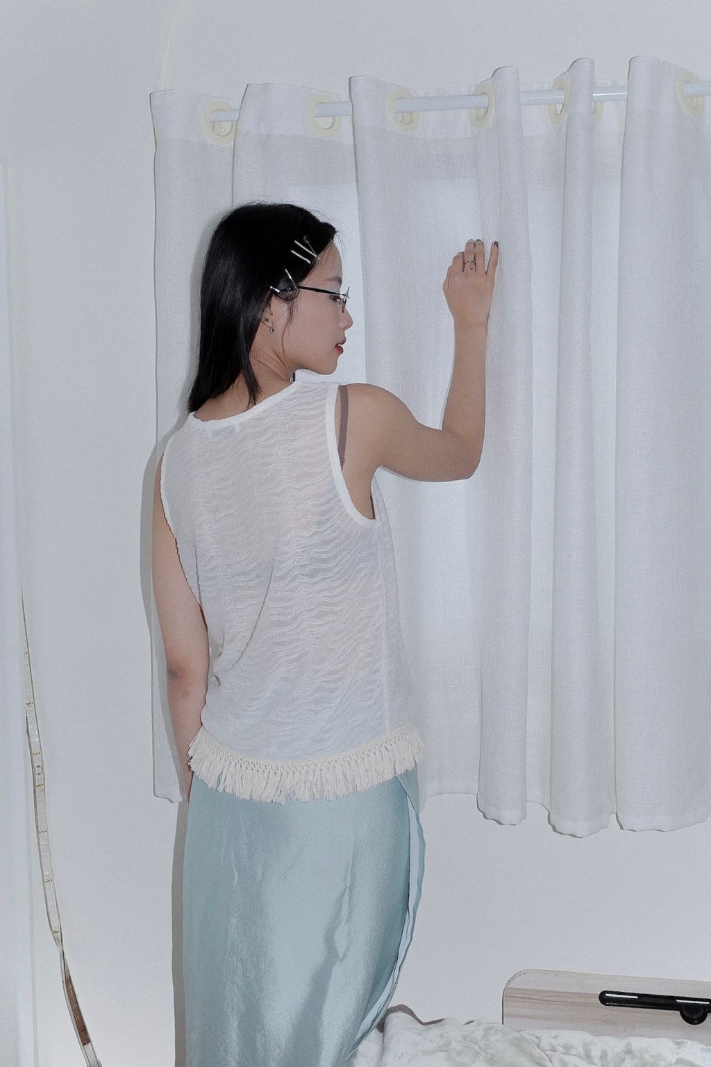 Ripple Tassel Sheer Sleeveless Vest - Green