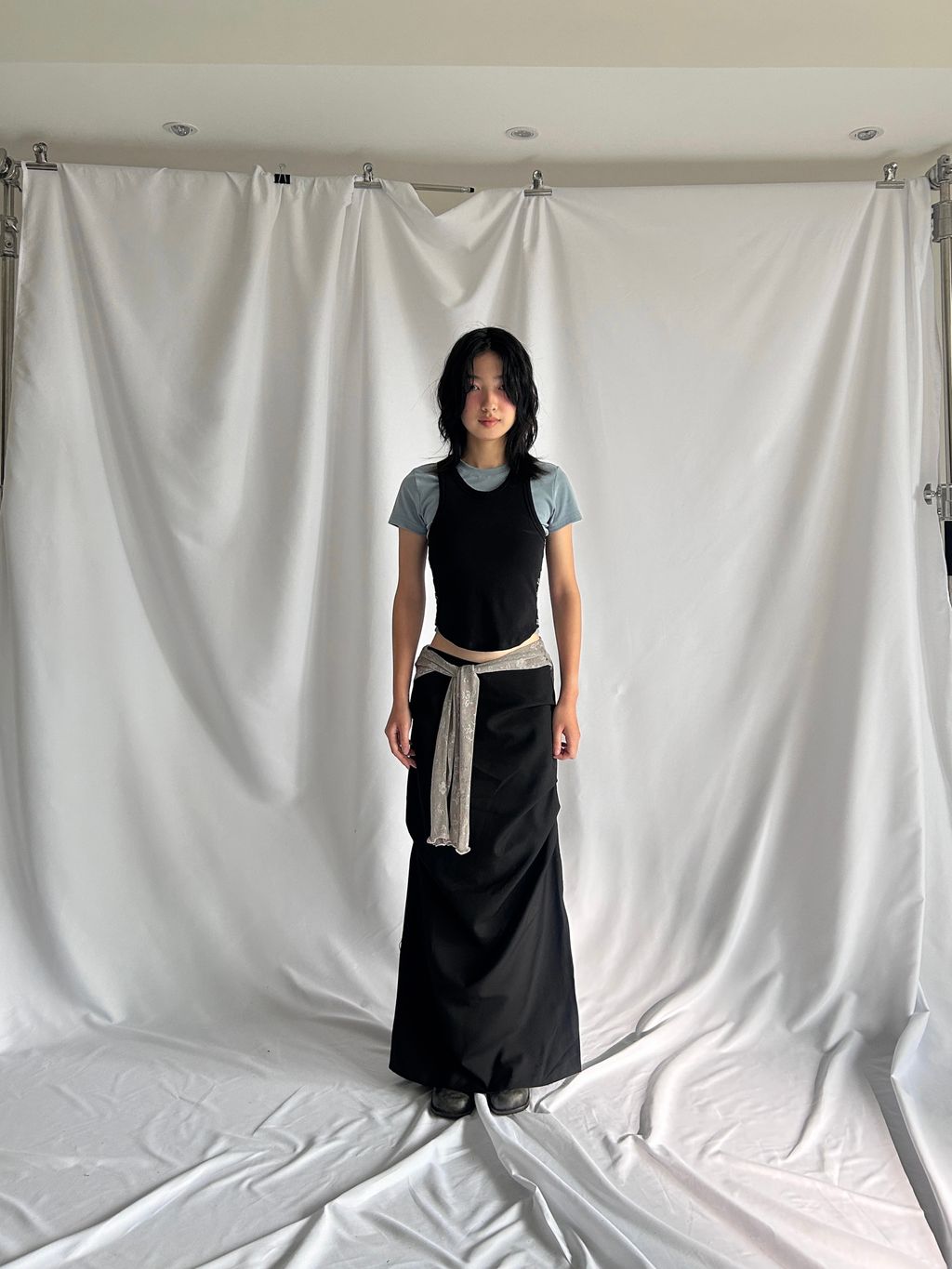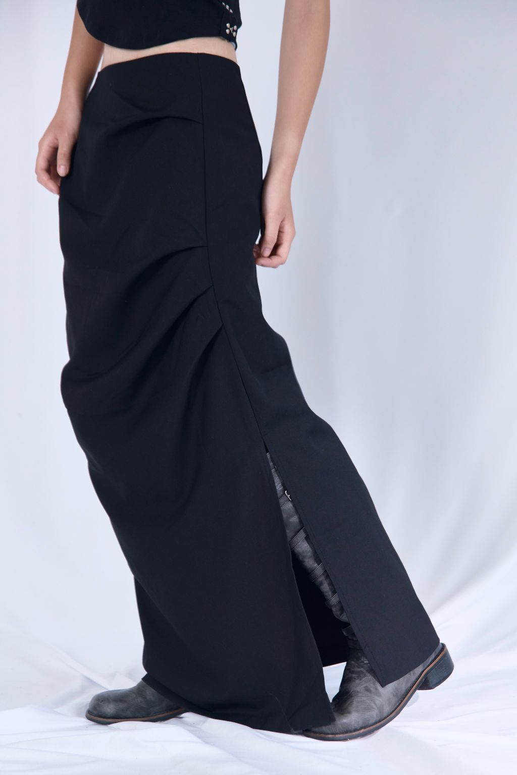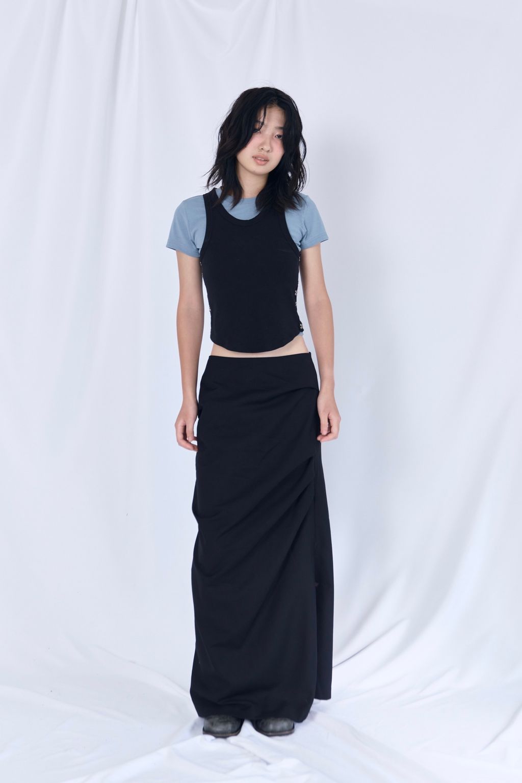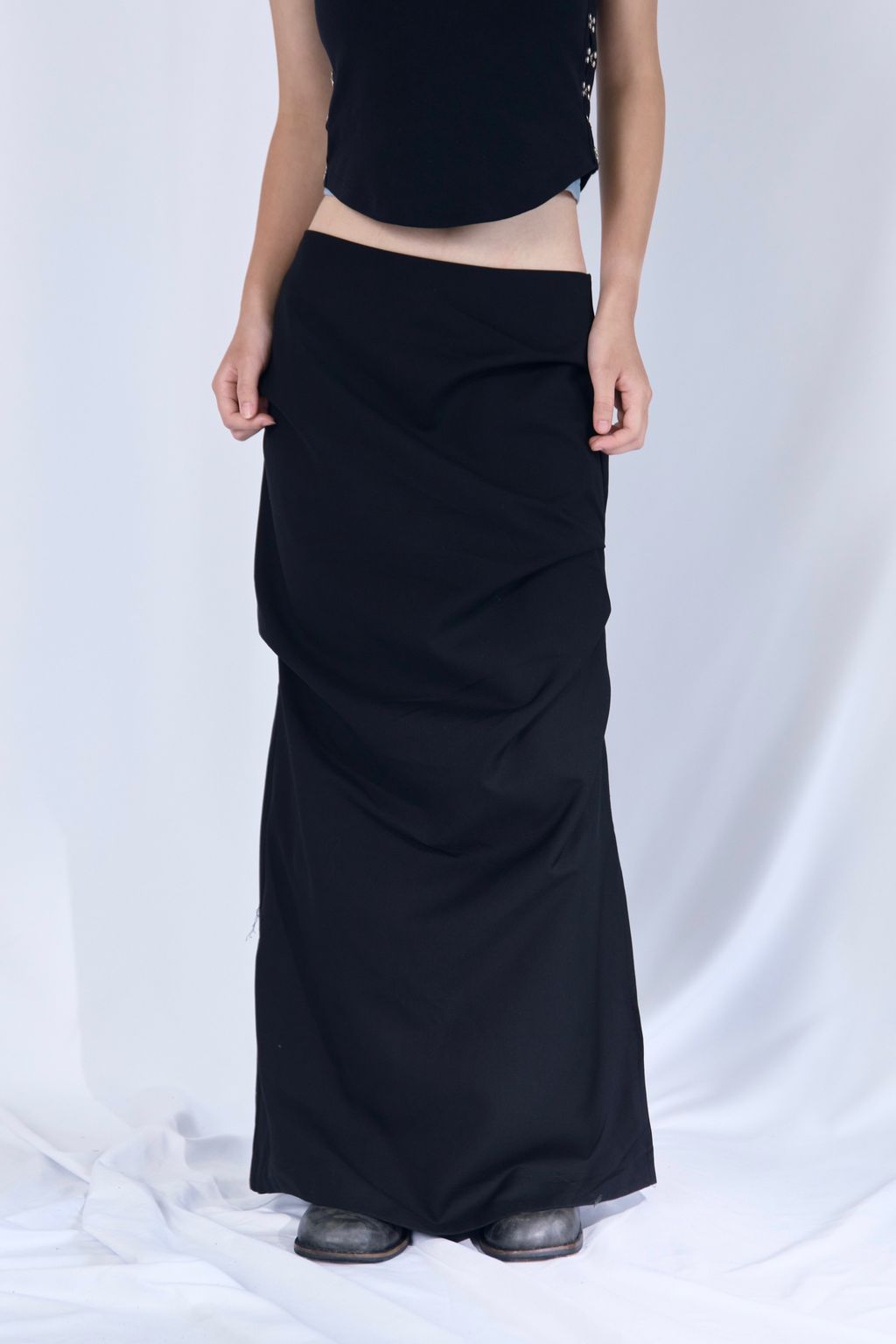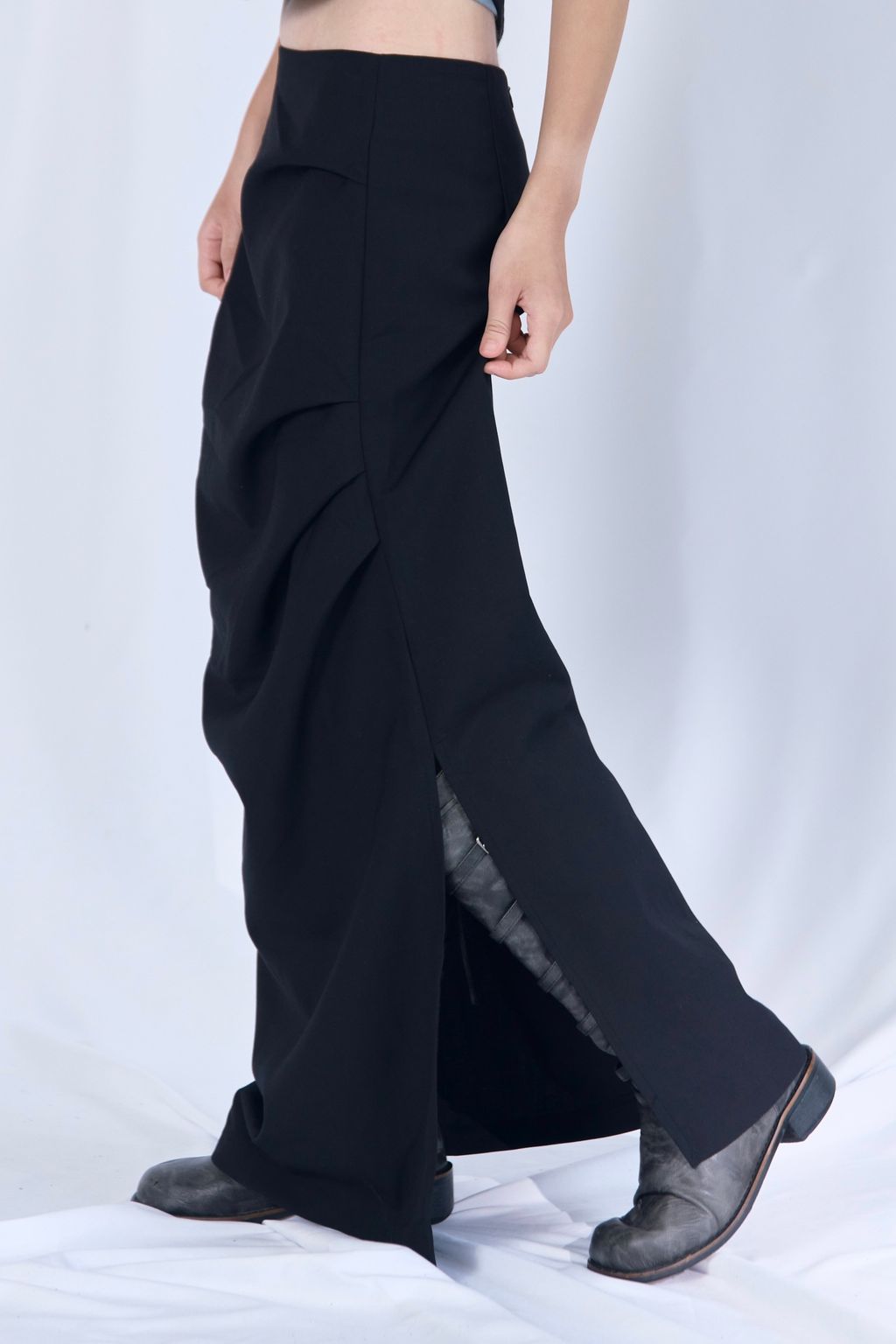 韓國設計師品牌 / 側抓皺不規則修身長裙 - 黑