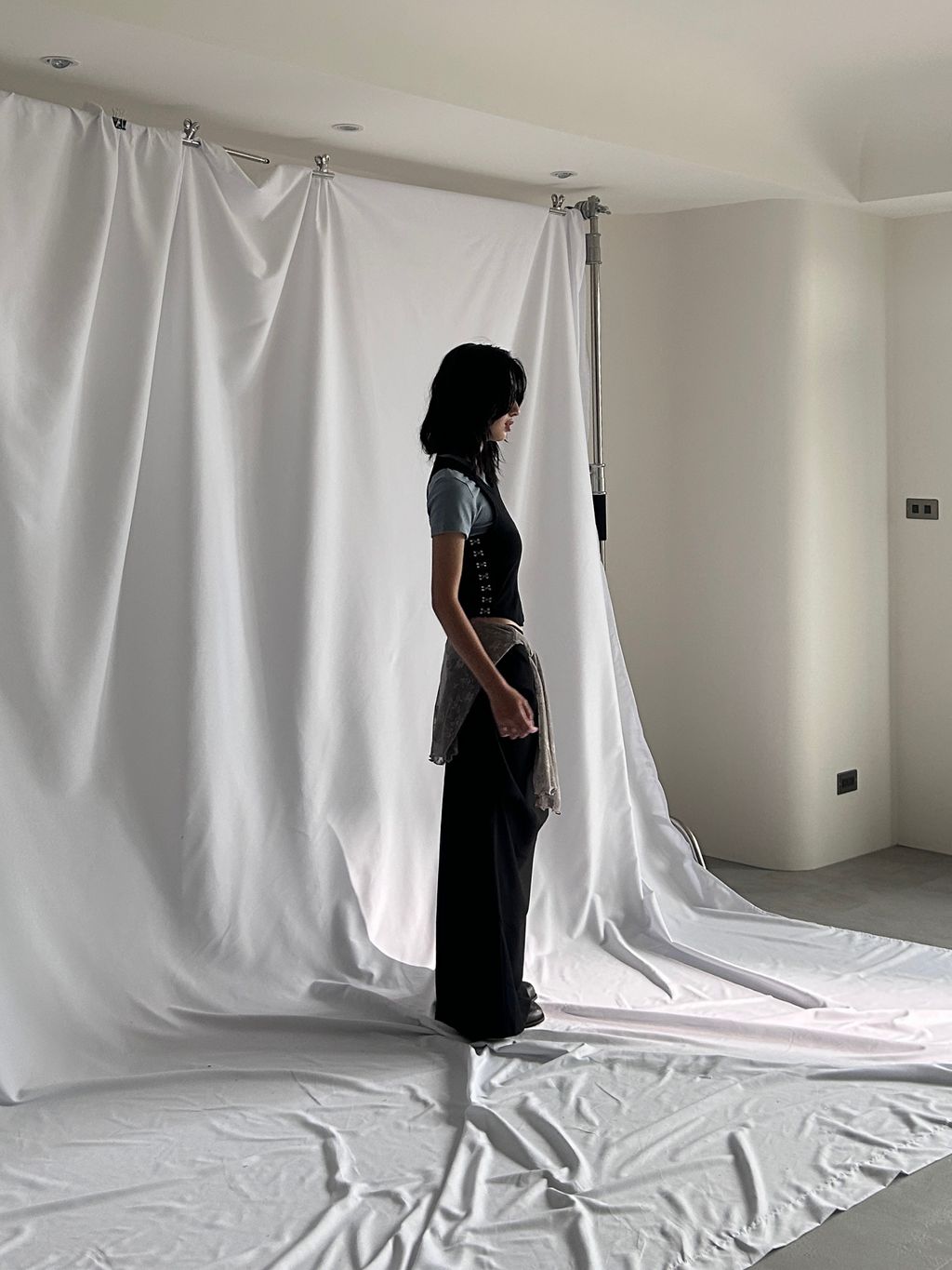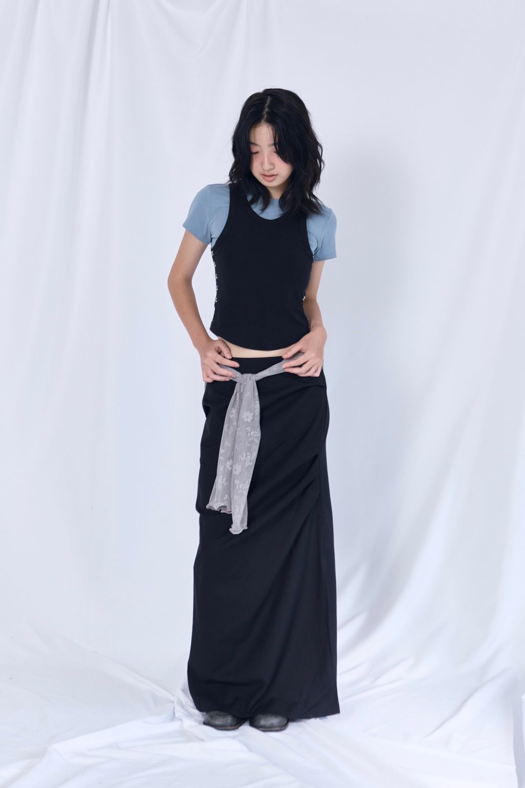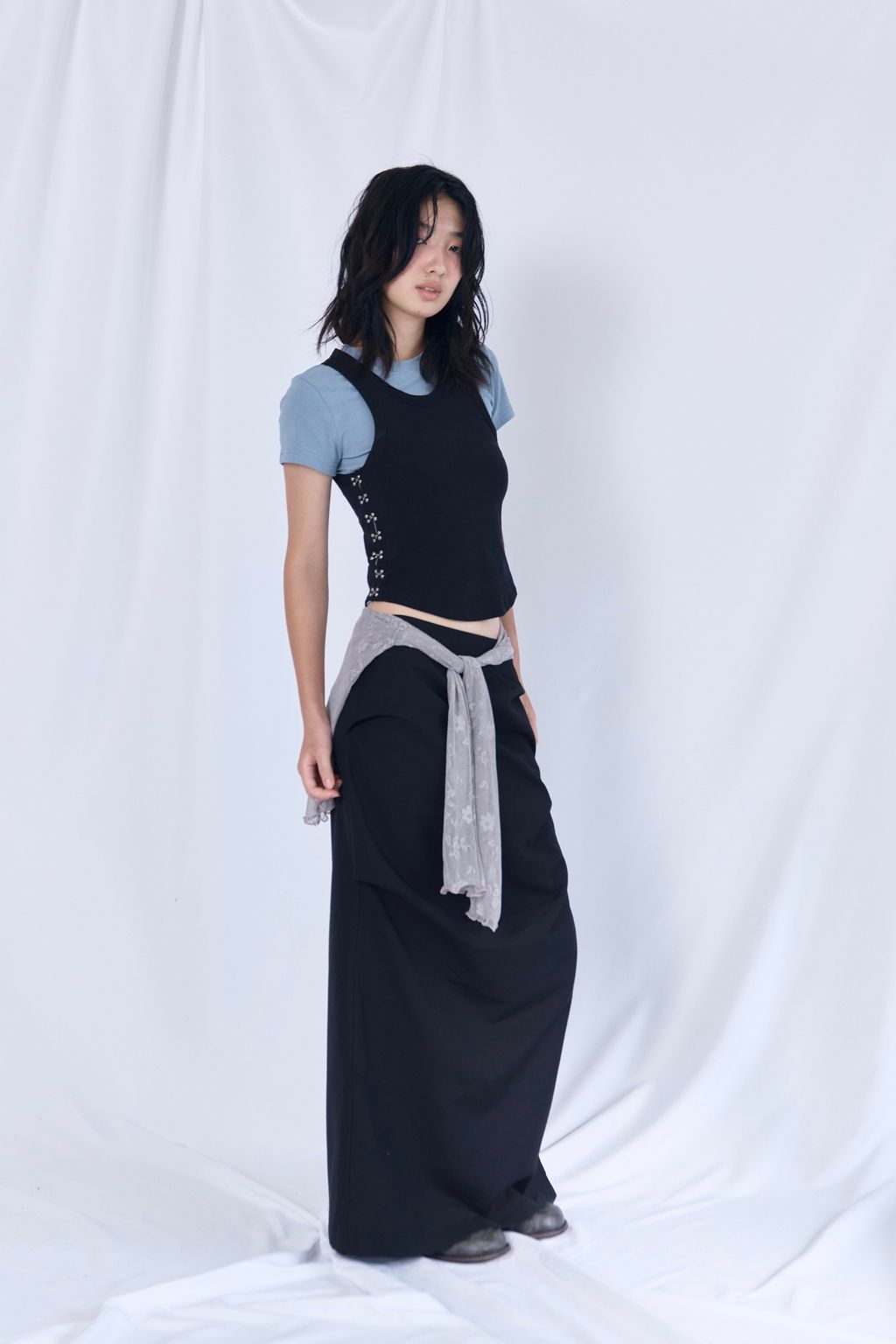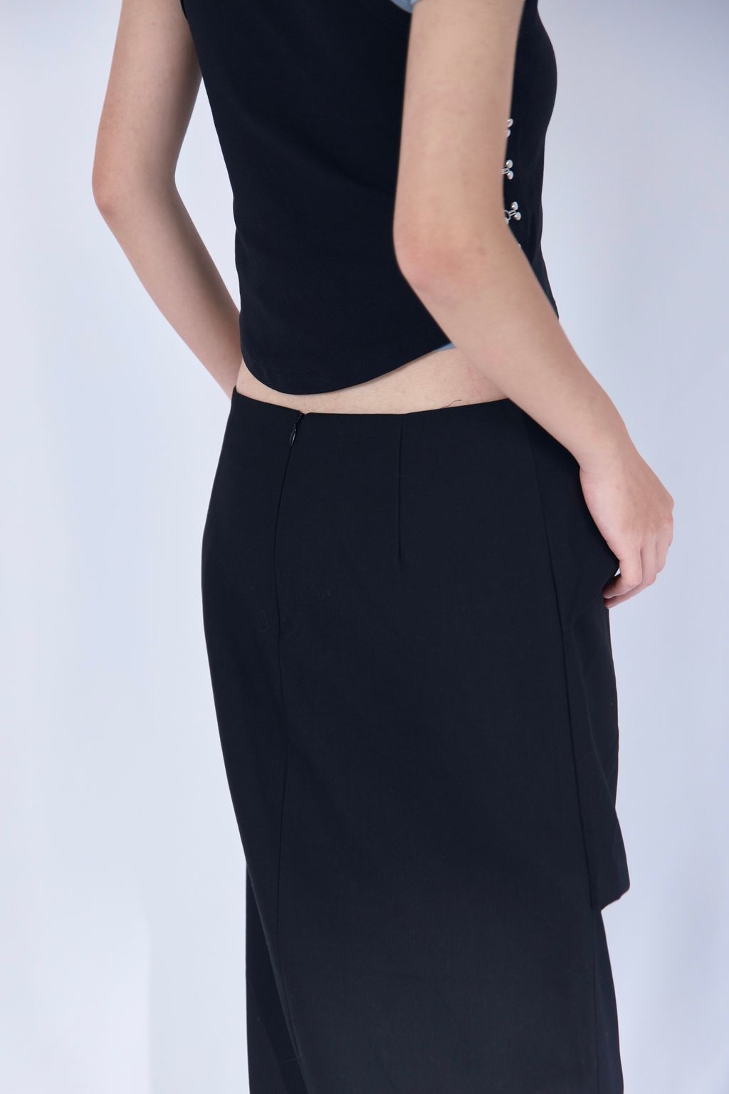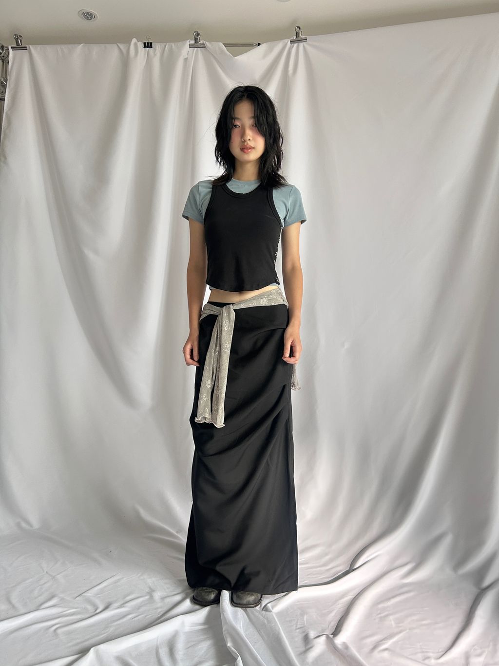韓國設計師品牌 / 側抓皺不規則修身長裙 - 黑