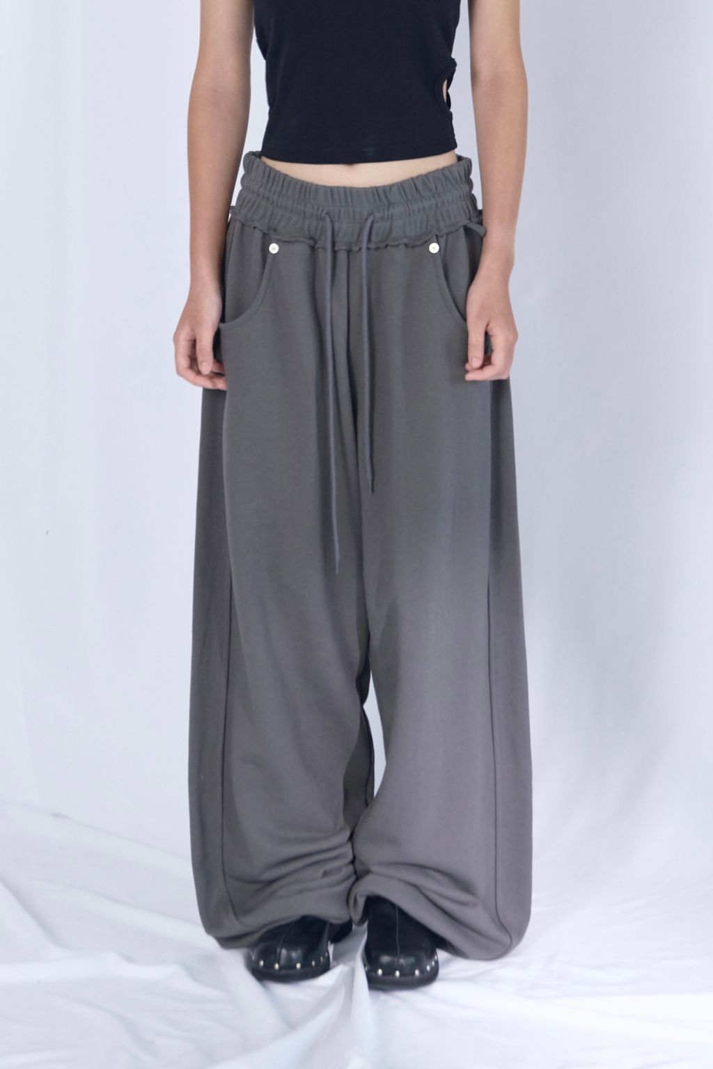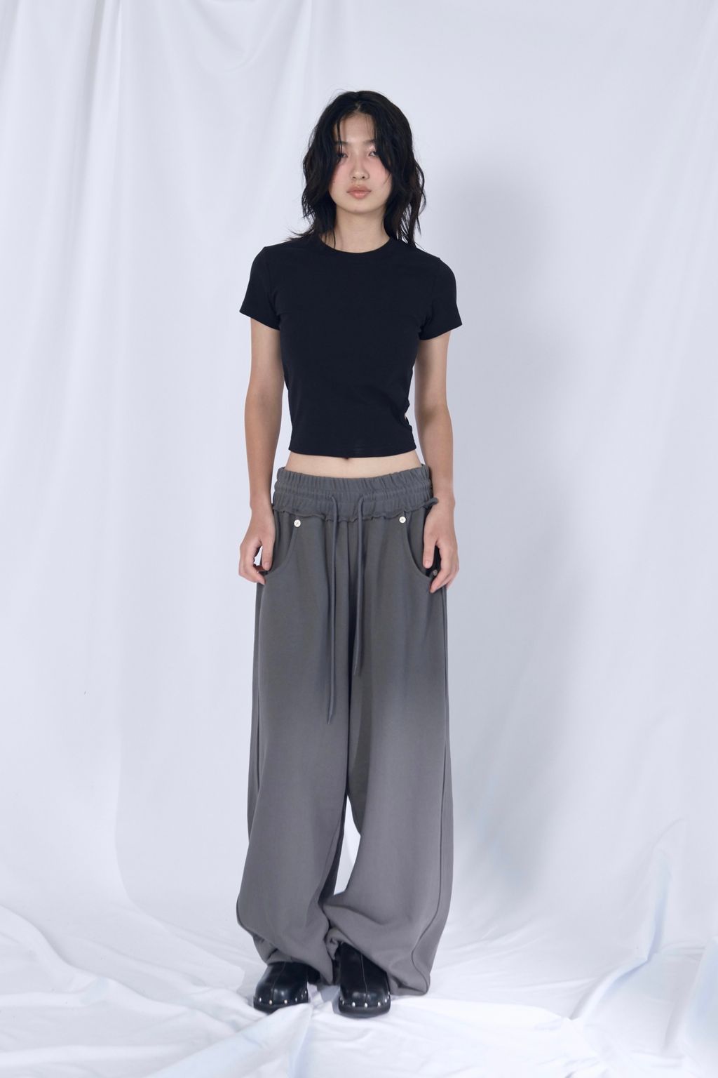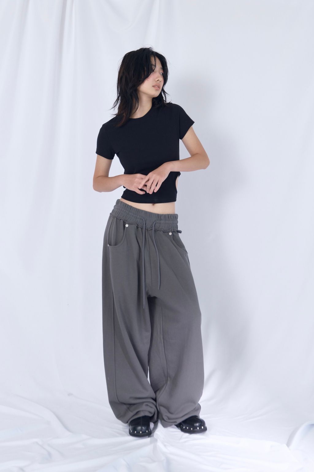 韓國設計師品牌 / 捲邊時髦棉褲 - 深灰