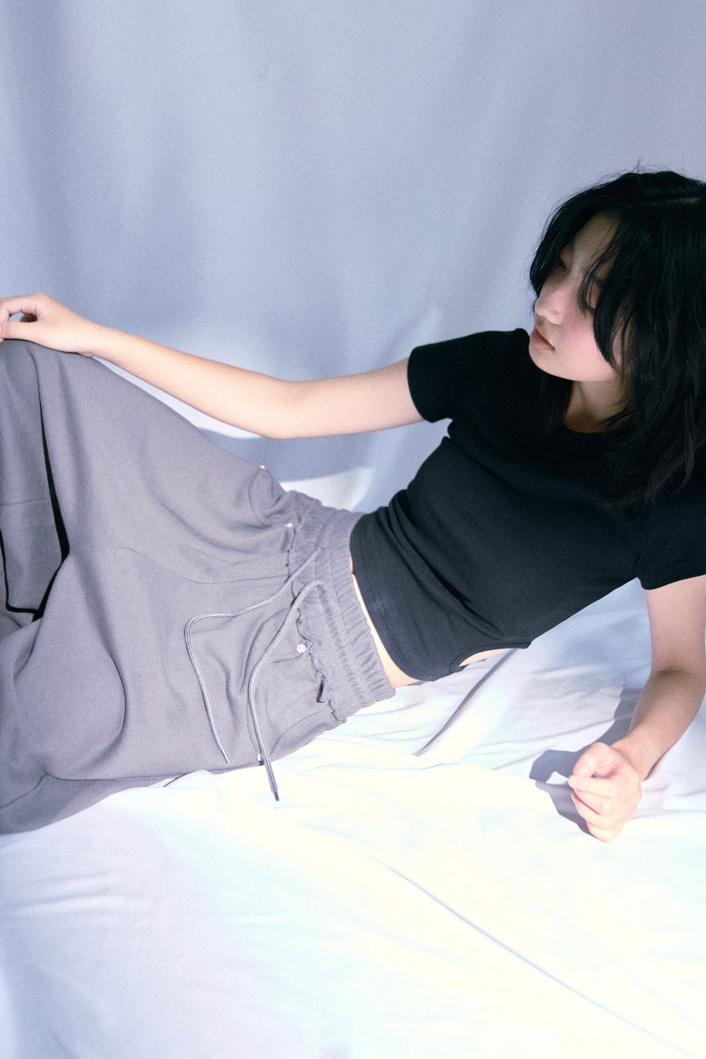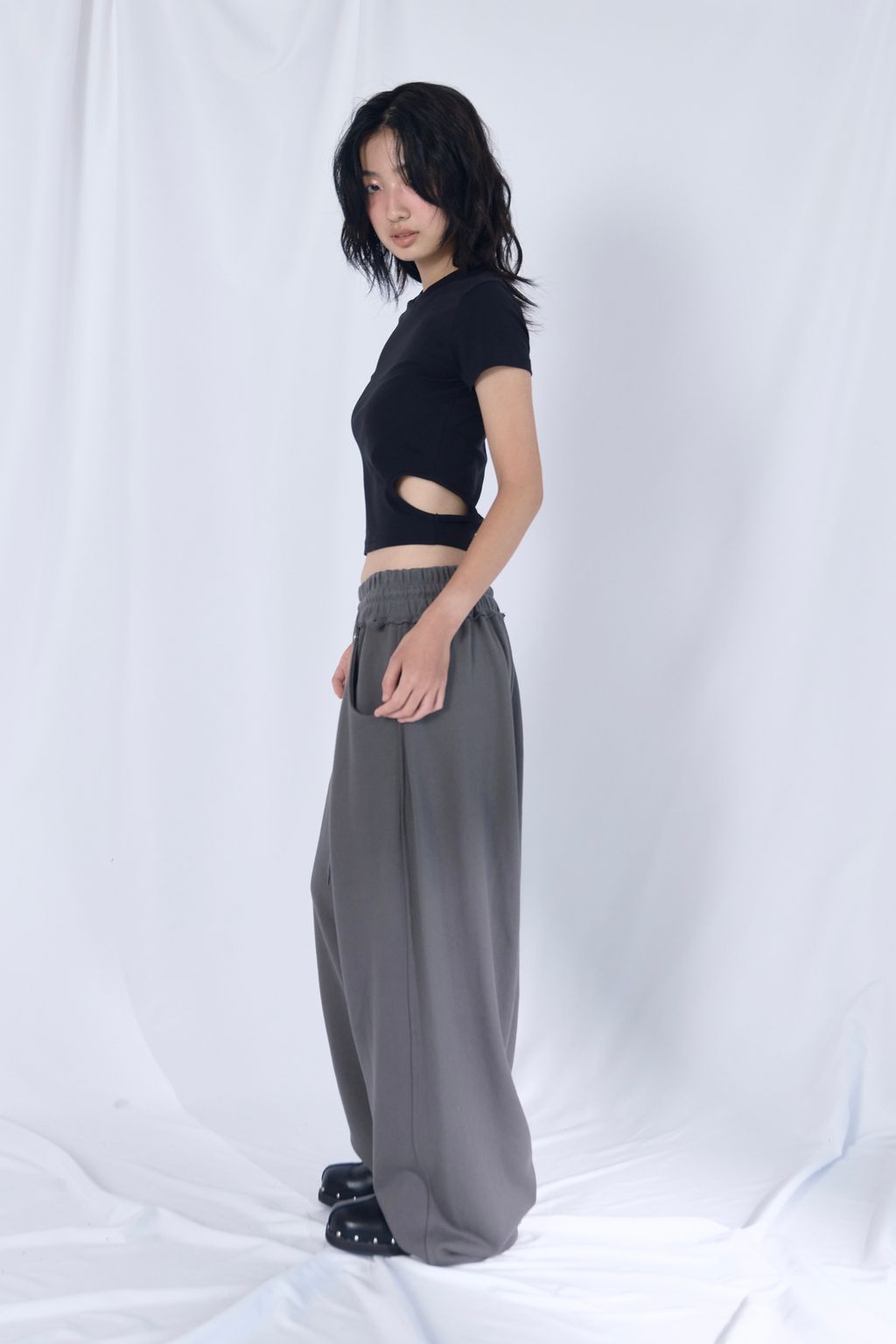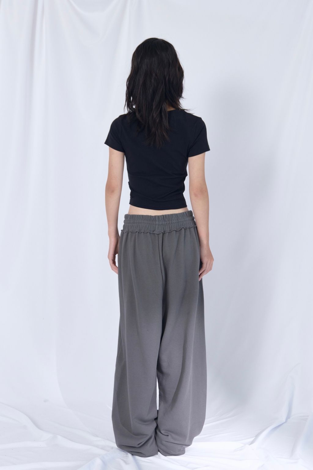 韓國設計師品牌 / 捲邊時髦棉褲 - 深灰
